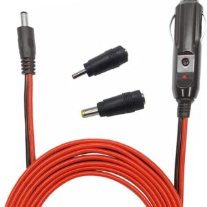 DC Car Charger Cable – 5.5mm x 2.1mm Connector to Cigarette Lighter Male Plug With Extra 2 Connectors 12-24V 15A Auto Power Supply Cord for Portable DVD Player, Car, Camera