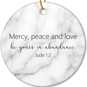 Mercy, Peace and Love Be Yours in Christmas Ceramic Ornaments Motivational Quote Ceramic Christmas Keepsake 3 in Funny Winter Tree Ornaments for Christmas Family Members