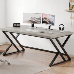 LVB Large Home Office Desk, Long Industrial Computer Desk, Metal Wood Writing Study Computer Table for Student, Big Modern Executive Simple Gaming Work Desk for Bedroom, Light Grey, 60 Inch