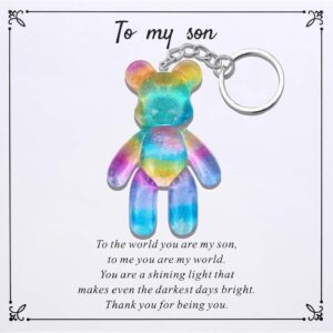 Pocket Bear Hug, Anxiety Relief Gifts for Son from Mom Dad, Mental Health Positivity Gift for Men Teen, Autism Fidget Gift, Thoughtful Gifts for School Anxiety, Rainbow Blue