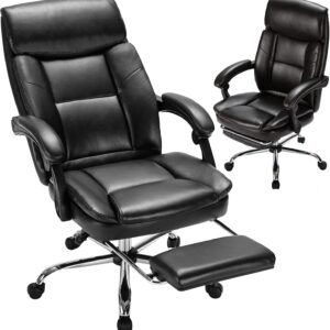Executive Office Chair, Ergonomic Big and Tall Leather Swivel Rolling Managerial Reclining Computer Desk Task Chair, Adjustable High Back Recliner Chair with Padded Armrests and Retractable Footrest