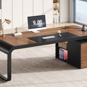 Tribesigns 78″ L-Shaped Executive Desk, Large Office Desk with Drawers and Lateral File Cabinet, Business Furniture with Storage Shelves, Modern Computer Desk for Home Office, Walnut & Black