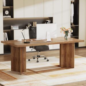 Tribesigns 63-inch Executive Desk, Vintage Home Office Computer Desk with Large Tabletop, Farmhouse Wood Writing Conference Table Workstation for Office, Study, Walnut Brown
