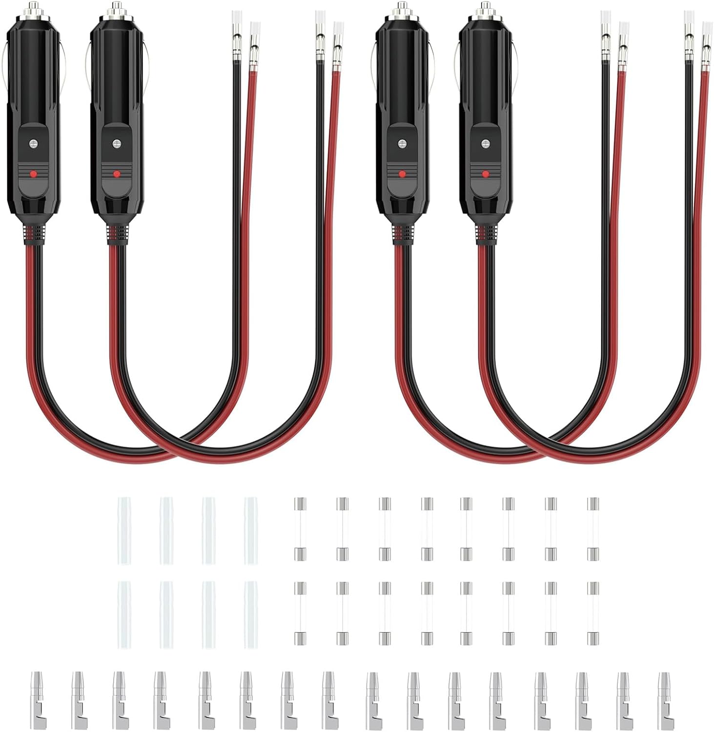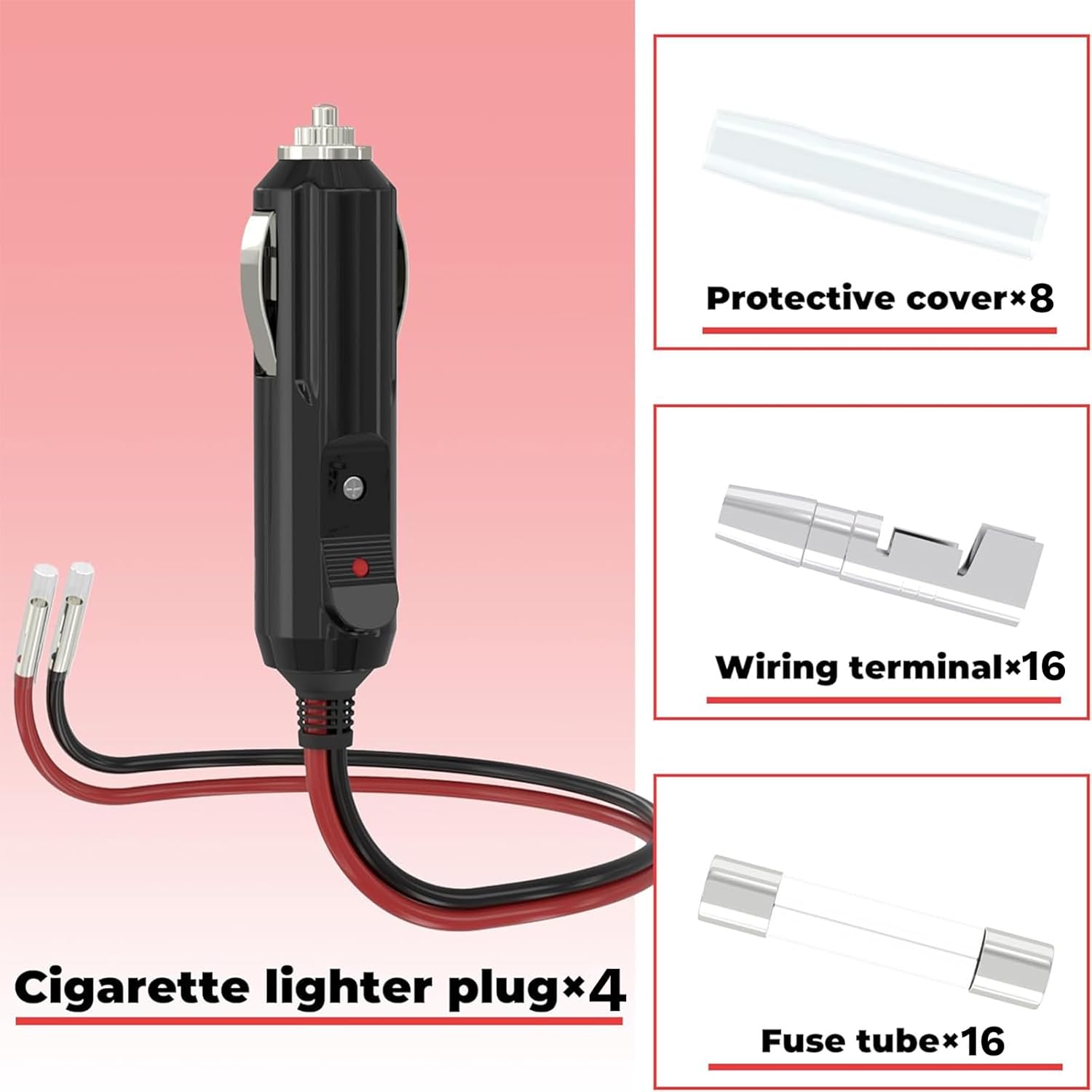 Complete Accessories: The cigarette lighter plug package has 16 built-in 10A fuse tubes, 16 wiring terminals, and 8 protective covers