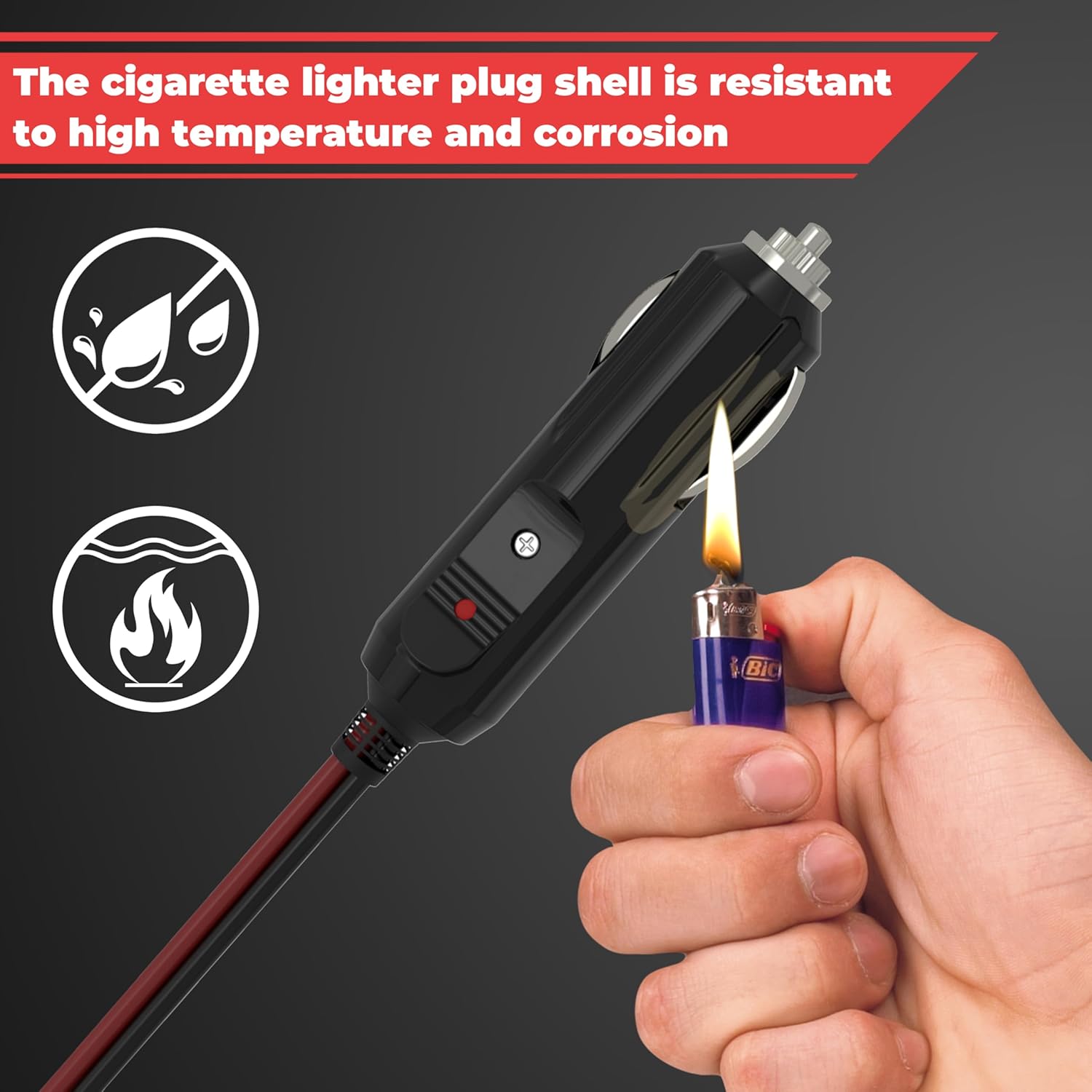 Easy to Use: The lighter plug adapter red wire is positive and the black wire is negative. Almost all models of cigarette lighter sockets are applicable. When the line is connected, the LED light will light up to avoid multiple operations