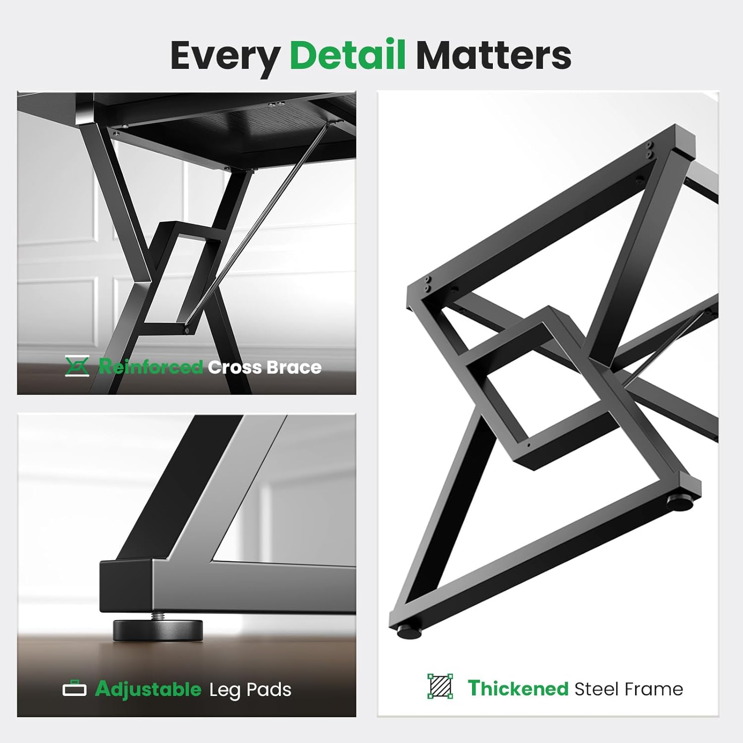 1.57″ Thickened Tabletop: the 1.57″ thick tabletop provide more stable and ensures stable support when using heavy-duty monitor stand and Other heavy equipment, so you can focus on your work with peace of mind.