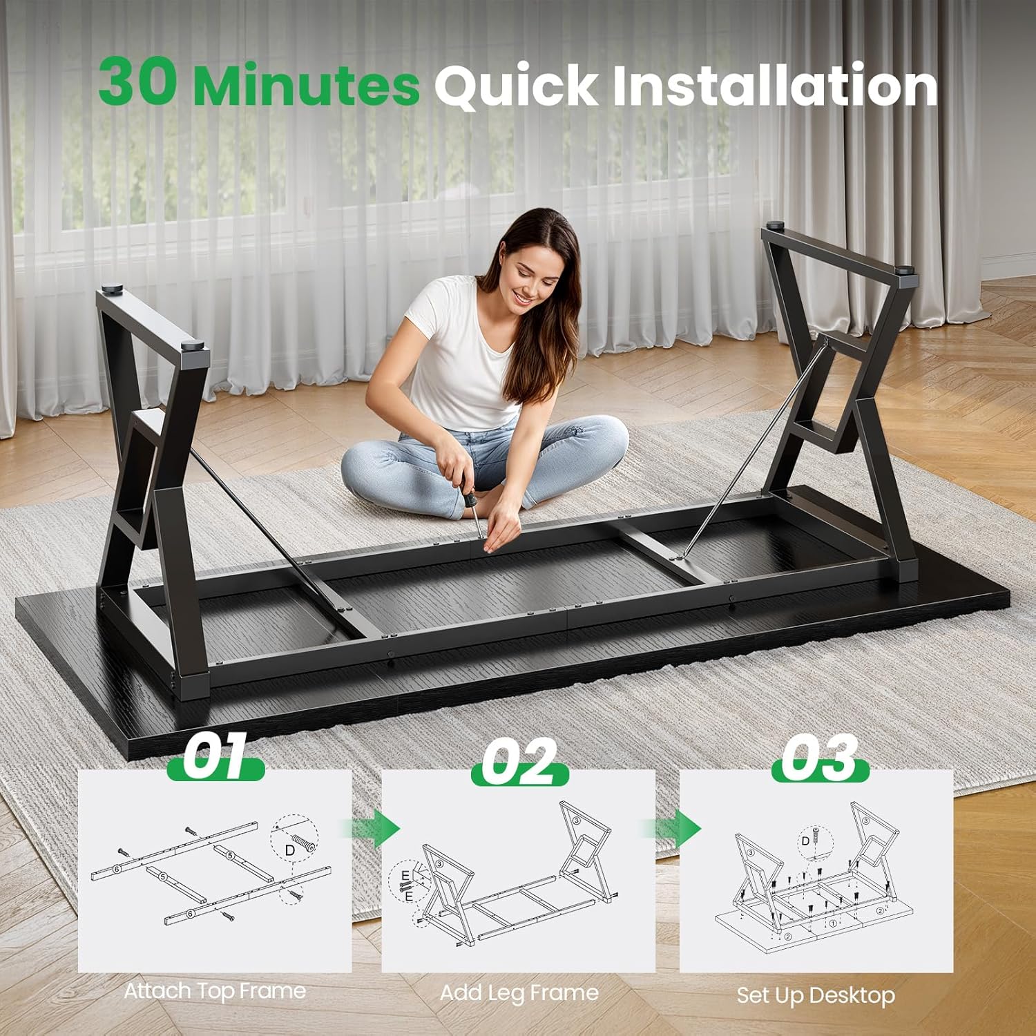 High Quality Eco-friend Desktop: Spacious 70.86″ x 31.49″ desktop crafted with premium medium-density fiberboard and the desktop surface is eco-friendly treated, offering water-resistant, dust-proof, and scratch-resistant properties, ensuring a safe and reliable user experience.