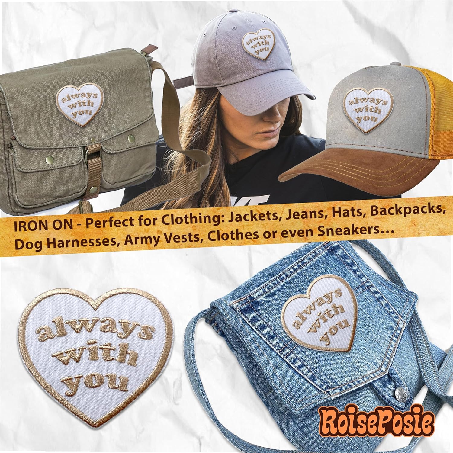 Super Strong Heat Seal Glue Backing: Each patch features a super strong heat-seal glue backing that ensures a secure, long-lasting bond. This adhesive is designed to withstand the rigors of daily use, including washing, wearing, and ironing. Once applied, the iron on embroidery transfers, iron on patches for jackets, iron-on patches for jeans stay firmly in place, providing a reliable and permanent attachment. No need to worry about peeling edges or uneven adhesion—ROISEPOSIE funny hat patches, patch jacket, patches for clothes women offer a professional-grade finish every time.
