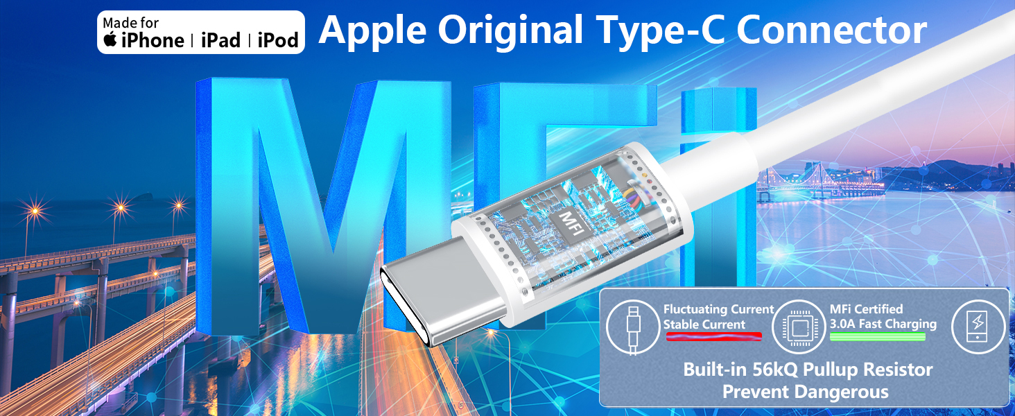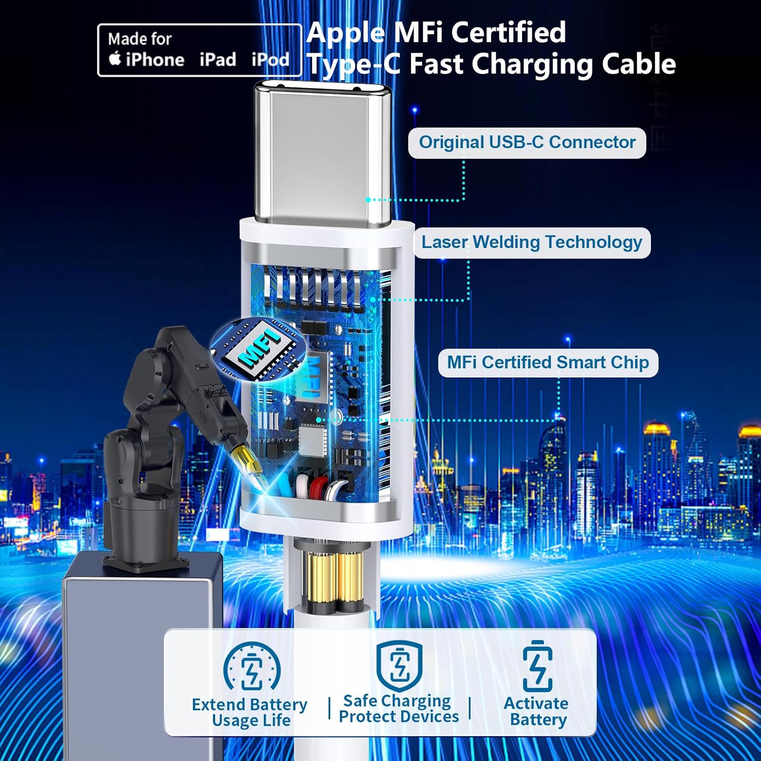 【MFi Certified Type-C Charge Cable】: Rombica’s Type-C Cable Consists of E-Marker Chipset and Original USB-C Connector. Compatible with following devices: iPhone 16/16 Plus/16 Pro/16 Pro Max/15/15 Plus/15 Pro/15 Pro Max, iPad Pro 12.9 inch, iPad Pro 11 inch, iPad Air 5th/4th, iPad 10th, iPad Mini 6, AirPods, SamSung Galaxy/Note, Google Pixel, Moto and more. MFi Certified Type-C Cable comes with surge protection, overvoltage protection and automatic chip recognition functions.