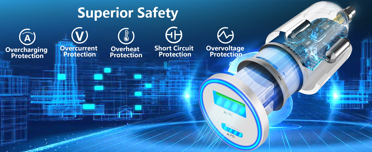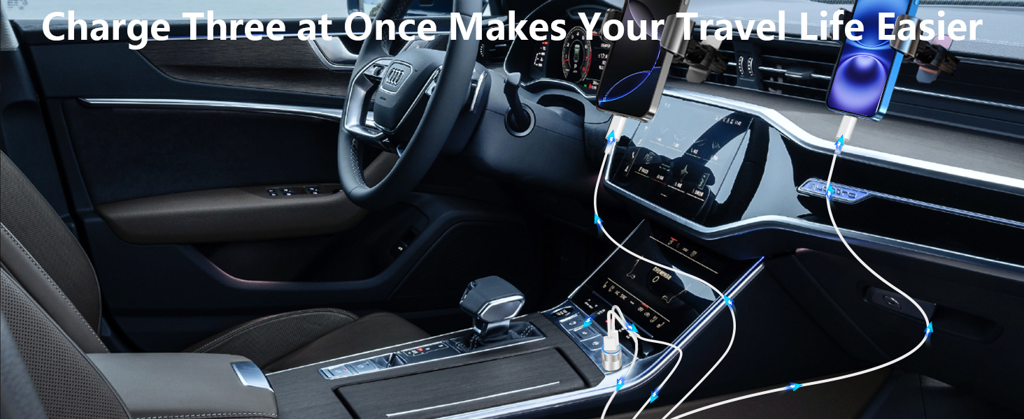 【Premium Materials and Design】: The housing made of Environmentally Friendly All Zinc Alloy + ABS Fireproof Materials offers better scratch resistance, heat dissipation, attractive design, and long service life, perfect for the most untouched vehicle interiors. Gold-plated tubing reduces heat during charging while maximizing charging efficiency. The blue ring LED indicator can help you to find the charge ports easily in the dark, Easily fits in a car Cigarette Lighter socket with limited space.