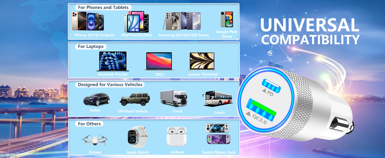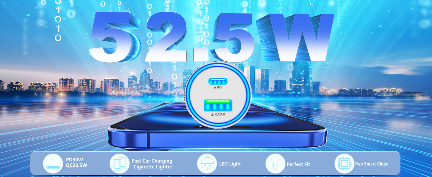 【2-Port 52.5W 2 IN 1 USB-C Fast Car Charger Cigarette Lighter】: Using highly efficient components + advanced chipset perfectly compatible with iPhone/SamSung device, Our 52.5W USB-C Fast Car Charger Adapter can charging two iPhone 16 simultaneously. Using original USB-C terminal and 56Ω pull-up resistor adjust voltage & current output to match connected iPhone 16, Rombica’s Intelligent Charging Tech ever charge iPhone 16 fastest possible, the charging speed is directly increased by 8 times.