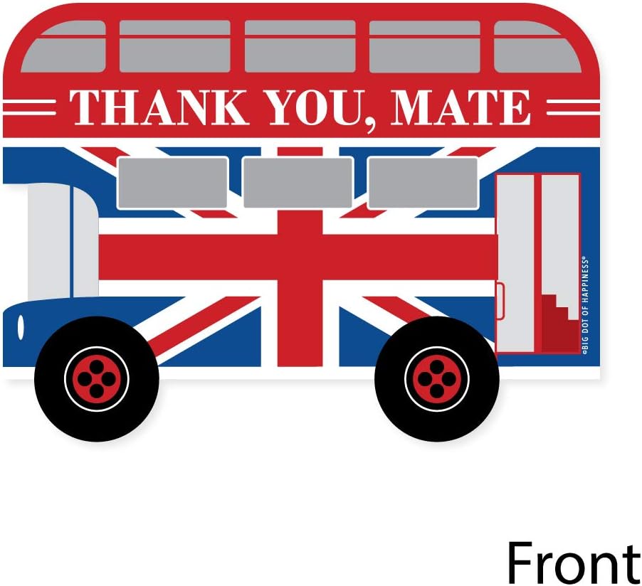 Shaped Thank You Cards Set INCLUDES 12 Cheerio, London thank you cards and 12 premium white envelopes. Bus Shaped Thank You Cards are the perfect end to any event.
