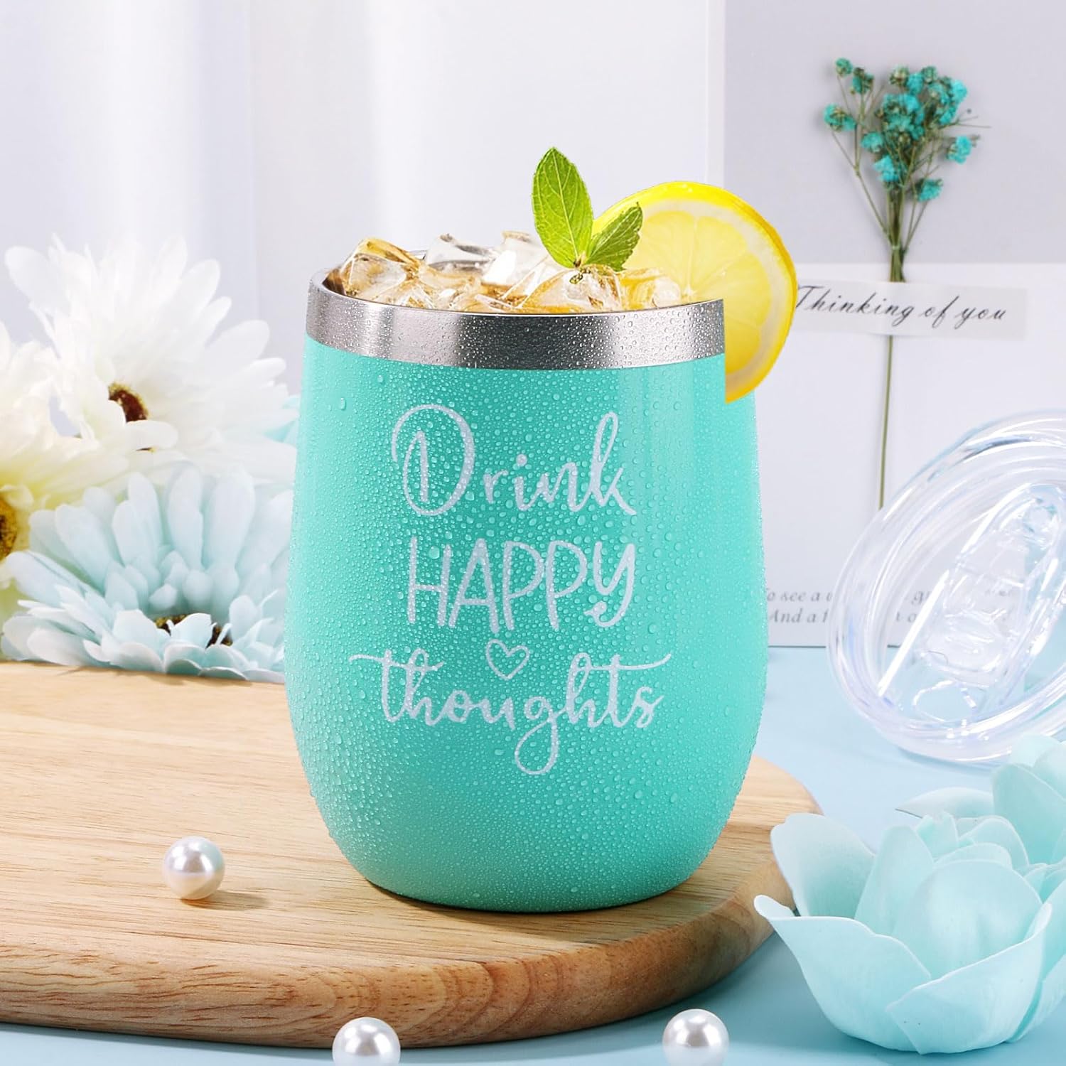 Double-walled insulation keep her favorite drink hot or cold.”Drink HAPPY Thoughts” an energetic quote brighten her days and make her smile
