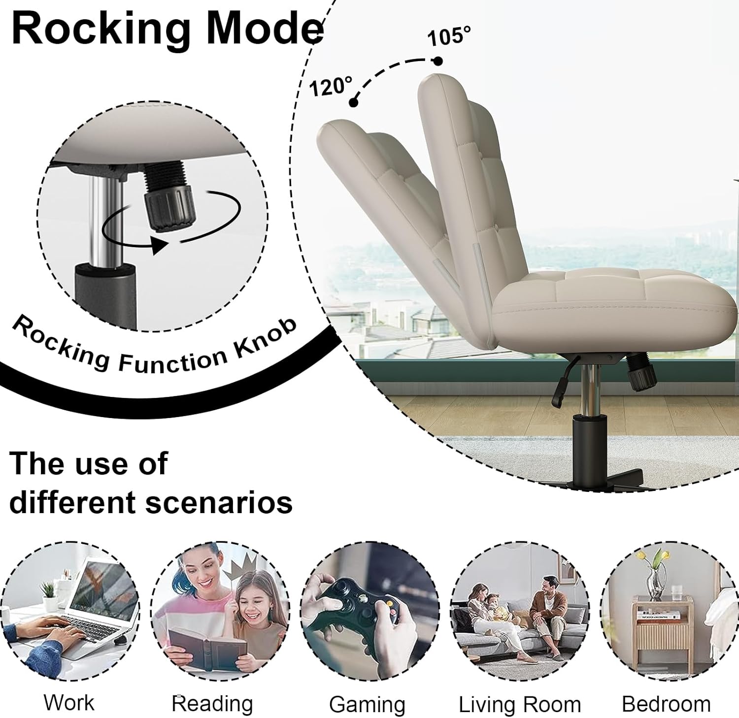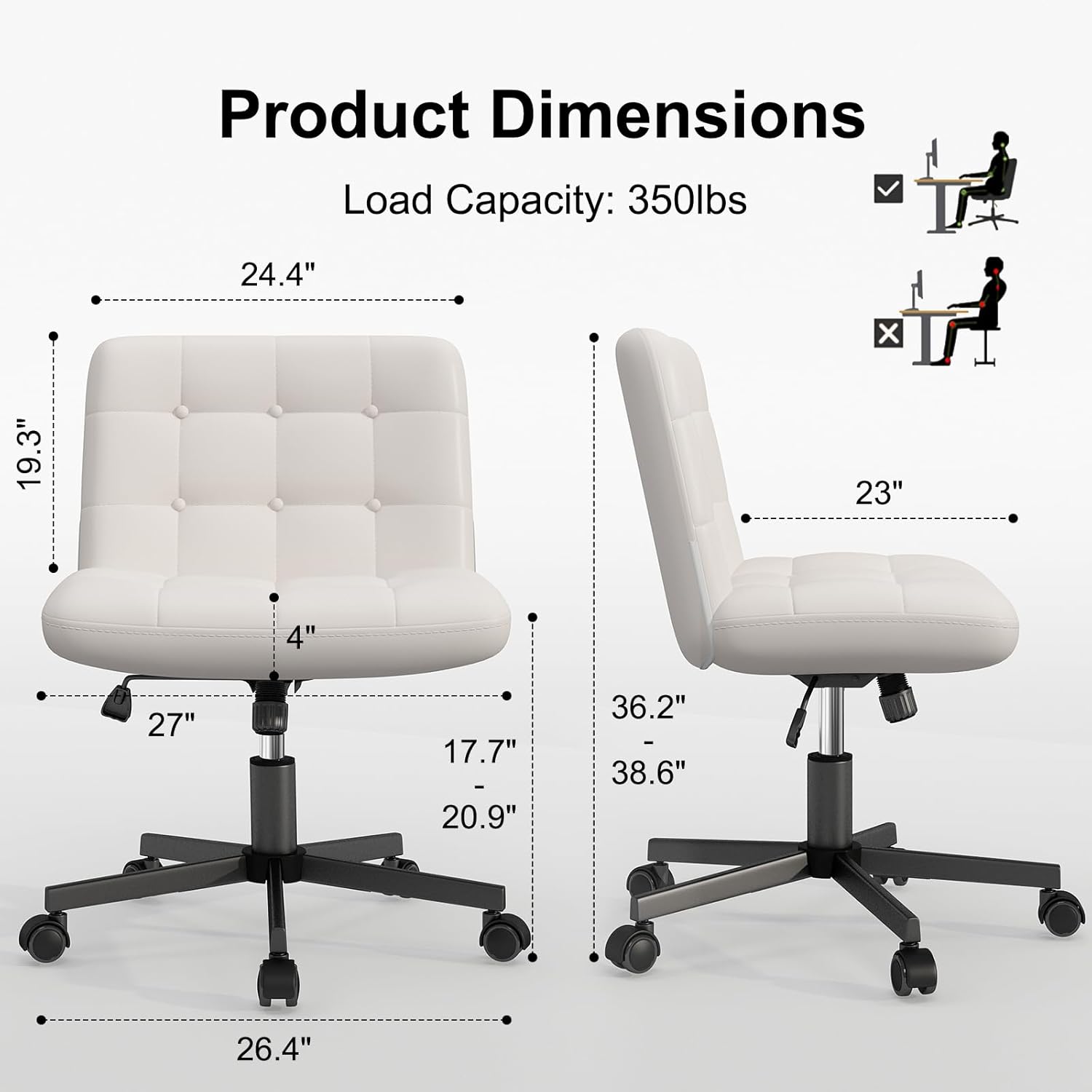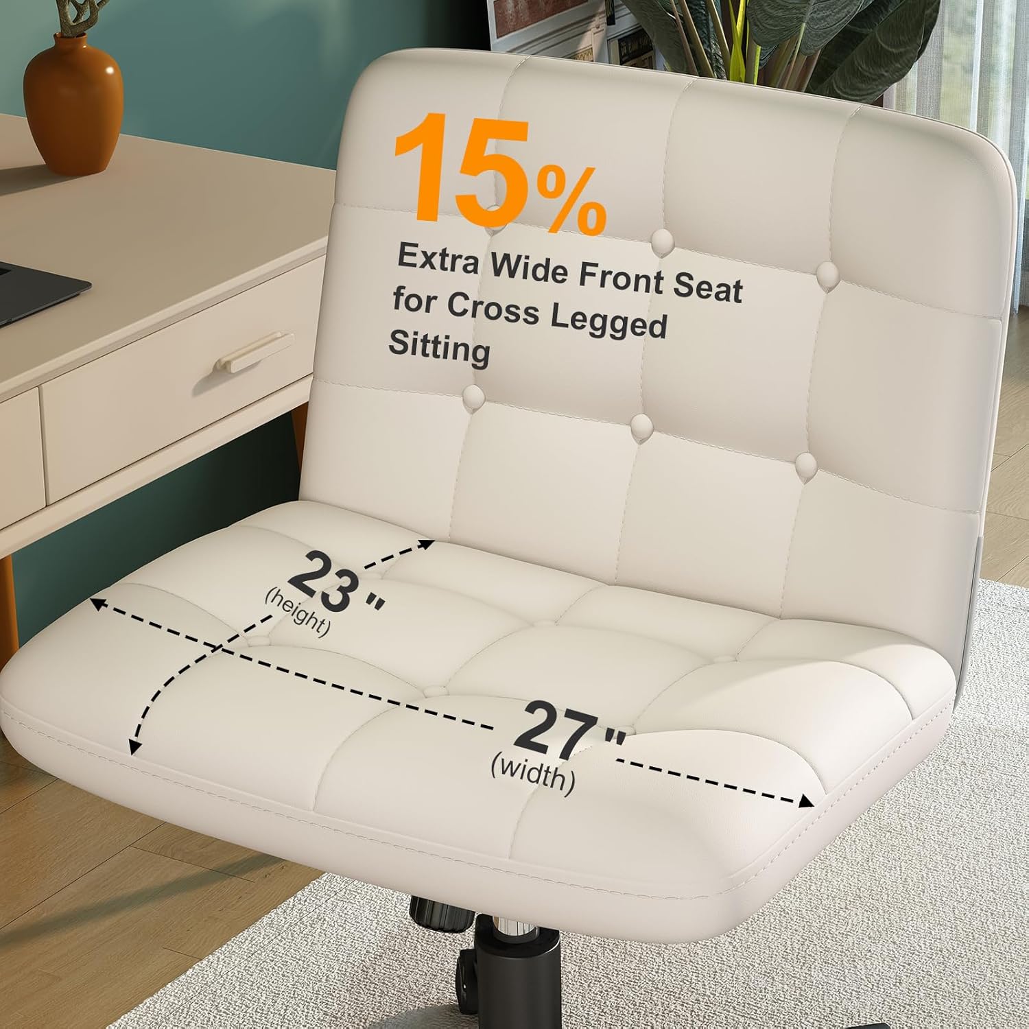 Wider Seat Width and Depth: Criss cross desk chair with a spacious 27″ extra wide and 23″ deep seat, this armless chair is perfect for those who prefer to maintain correct posture or sit cross-legged, providing ample room and exceptional comfort