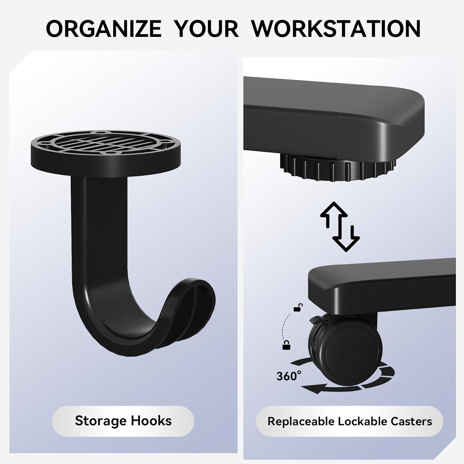 【Easy Installation】The electric office furniture includes detailed instructions and labeled hardware for hassle-free assembly. 2 hooks can hold headphones or bags to keep your workspace clean and clutter-free.