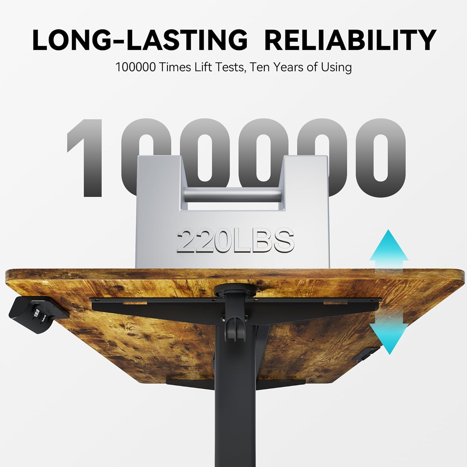 Electric Standing Desk Adjustable Height 53″x24″ Stand Up Desk with Lockable Wheels Ergonomic Sit Stand Desk for for Work Office Home Computer Workstation (Rustic Brown)