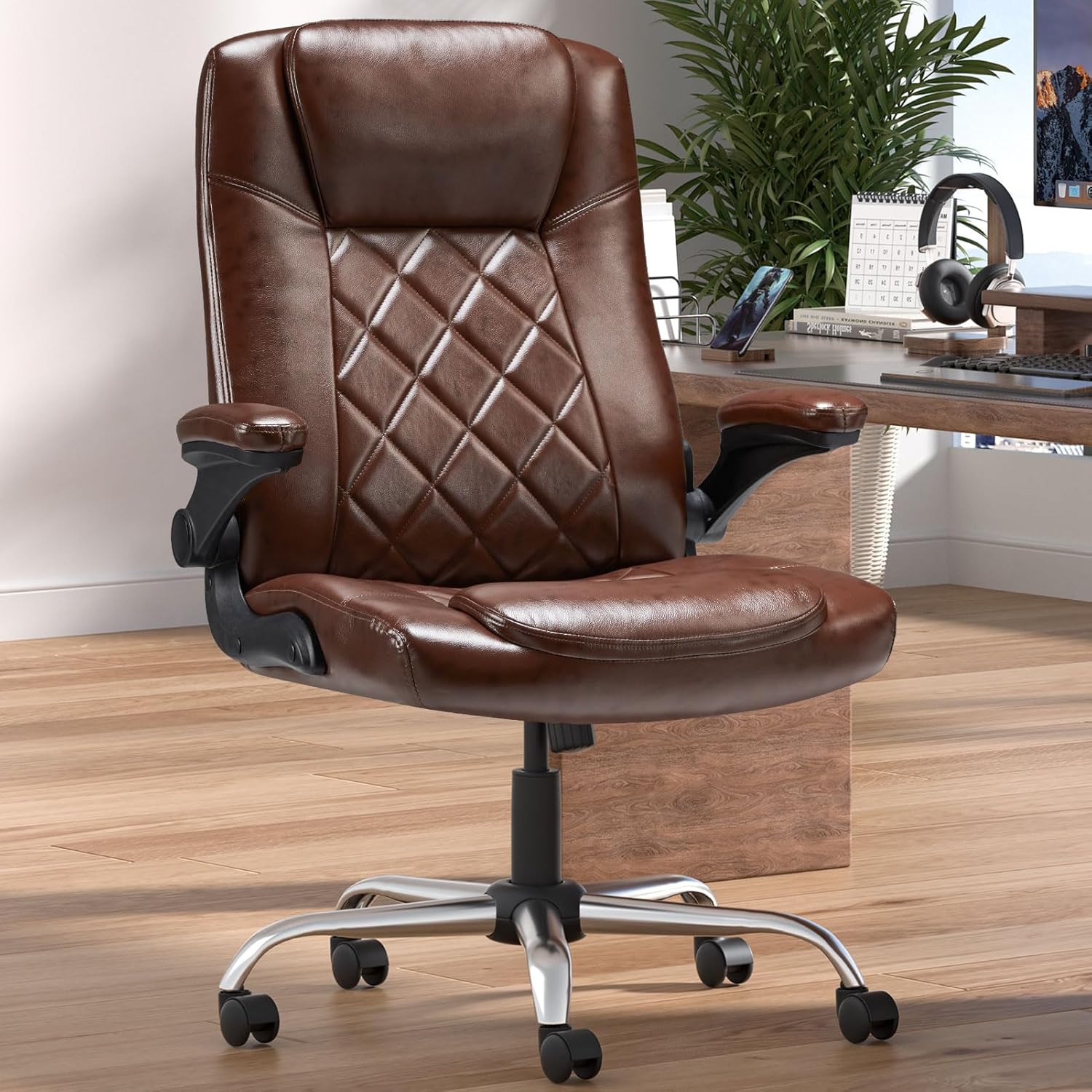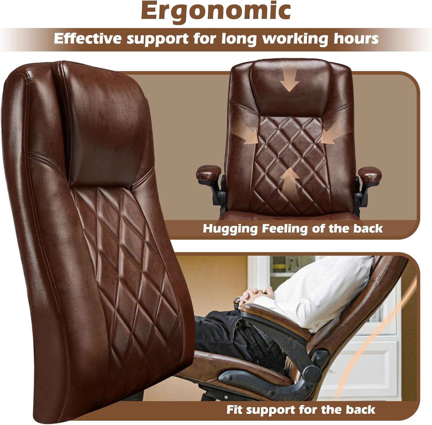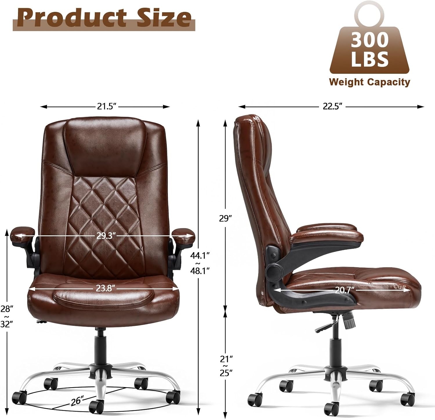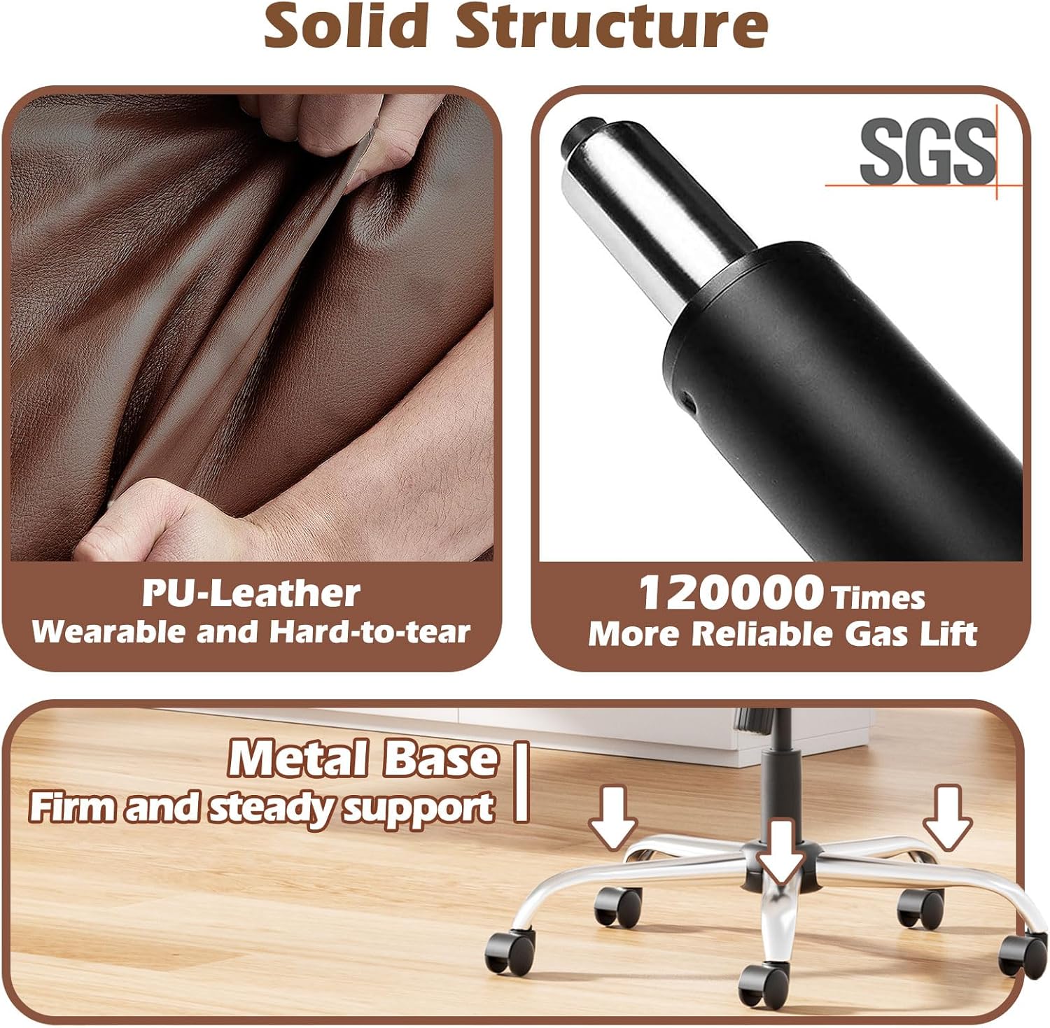 【Durable and Dependable】Crafted with a robust metal base and the SGS-certified gas lift, the chair can hold up to 300 lbs. The fine leather is resilient and easy to clean, ensuring long-term use. The reinforced armrests enhance safety and stability