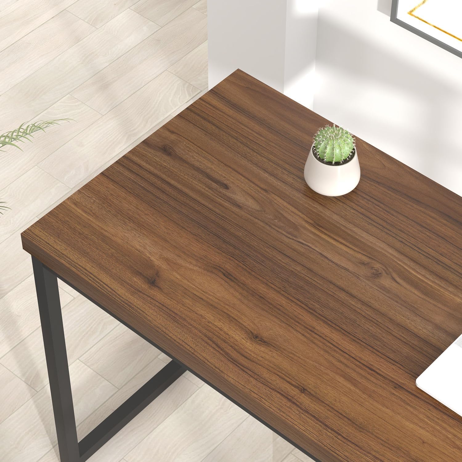 With its metal V-shaped frame design and rustic walnut wood grain surface, this computer table adds industrial charm and minimalist style to your home office. It is both aesthetically pleasing and functional.