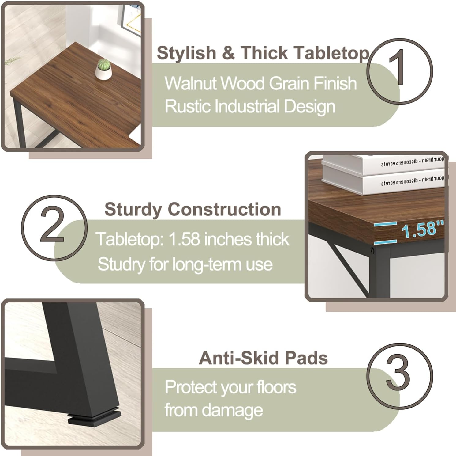 Sturdy and Stable Construction: Built from a 1.58″ thick MDF board and a robust metal frame, this home office desk ensures durability and stability for long-term use. Desk size: 53″ W x 23.6″ D x 29.5″ H.