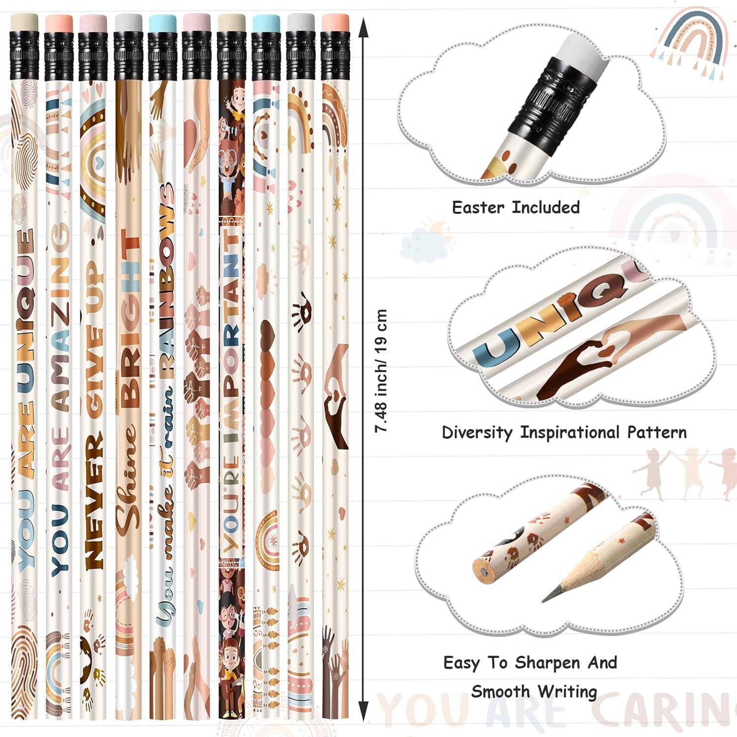 Boho Design: these bohemian rainbow pencils are printed with different skin hands and kindness gestures, which can make students feel valued and respected, and also printed with different inspirational quotes and bright colors to inspire you to face learning and life positively