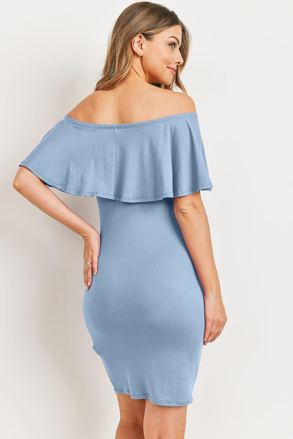 SINGLE RUFFLE OFF SHOULDER MATERNITY FITTED BODYCON DRESSSINGLE RUFFLE OFF SHOULDER MATERNITY FITTED BODYCON DRESS