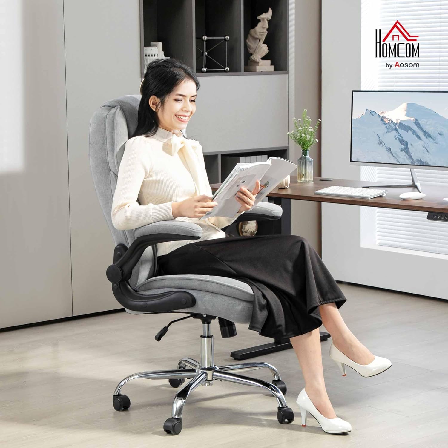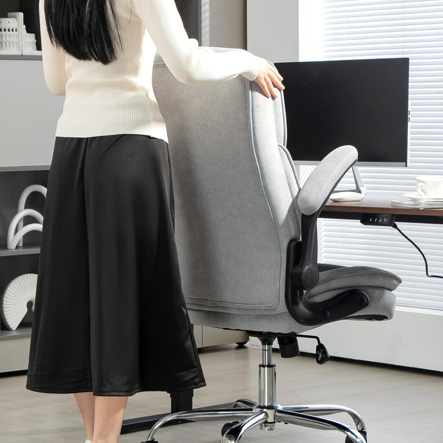 Space-Saving Design: Equipped with flip-up armrests, this home office chair can be tucked under your desk, maximizing your workspace for a clutter-free home office surrounding