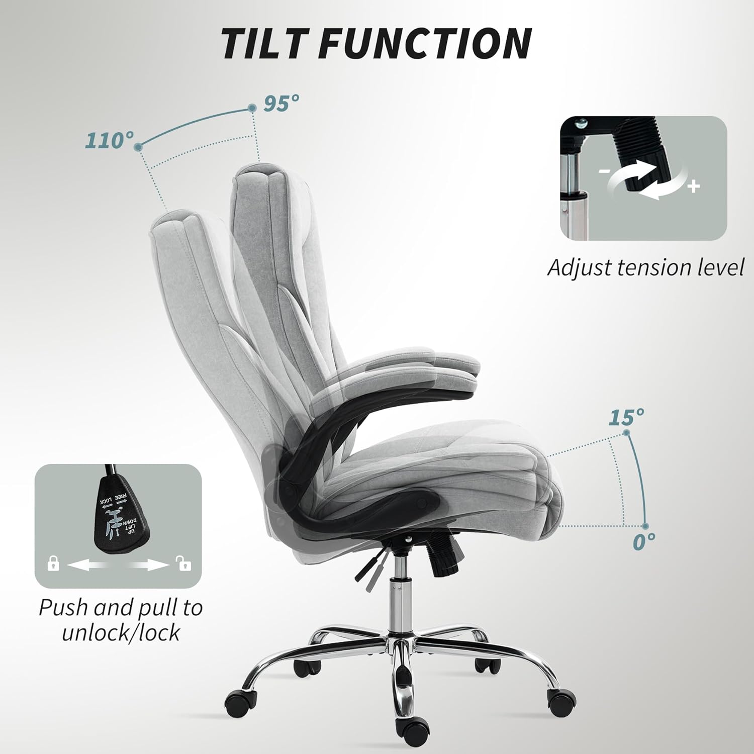 Adjustable Tilt: Experience personalized comfort with the tilt function of this comfy office chair, allowing you to rock back and forth and adjust to your preferred angle for optimal relaxation