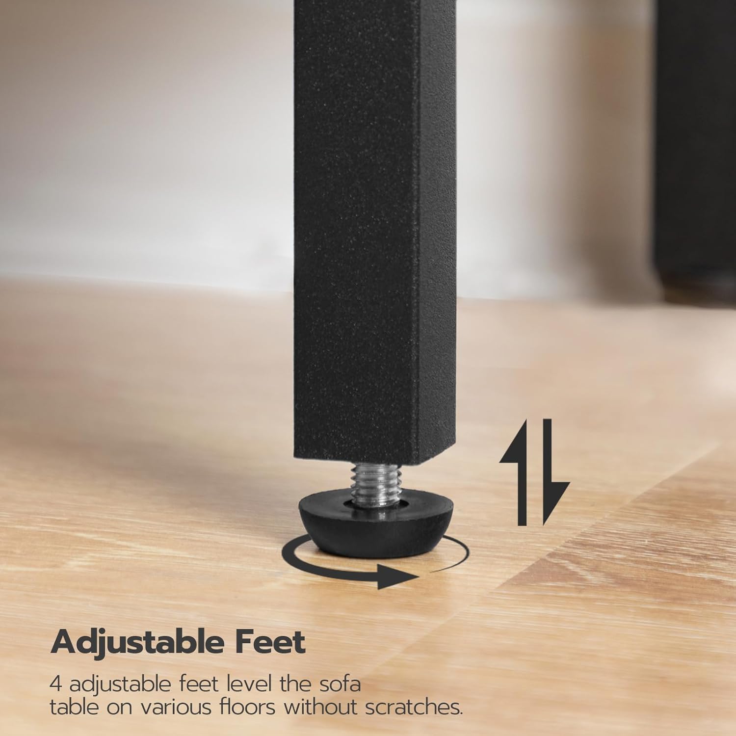 Stable Console Table: The black metal frame with quality particleboard plus the wooden shelves cast a firm sofa table. The top can load up to 88 lb and each wooden shelf 33 lb. 4 adjustable feet level the console table on various floors without scratches