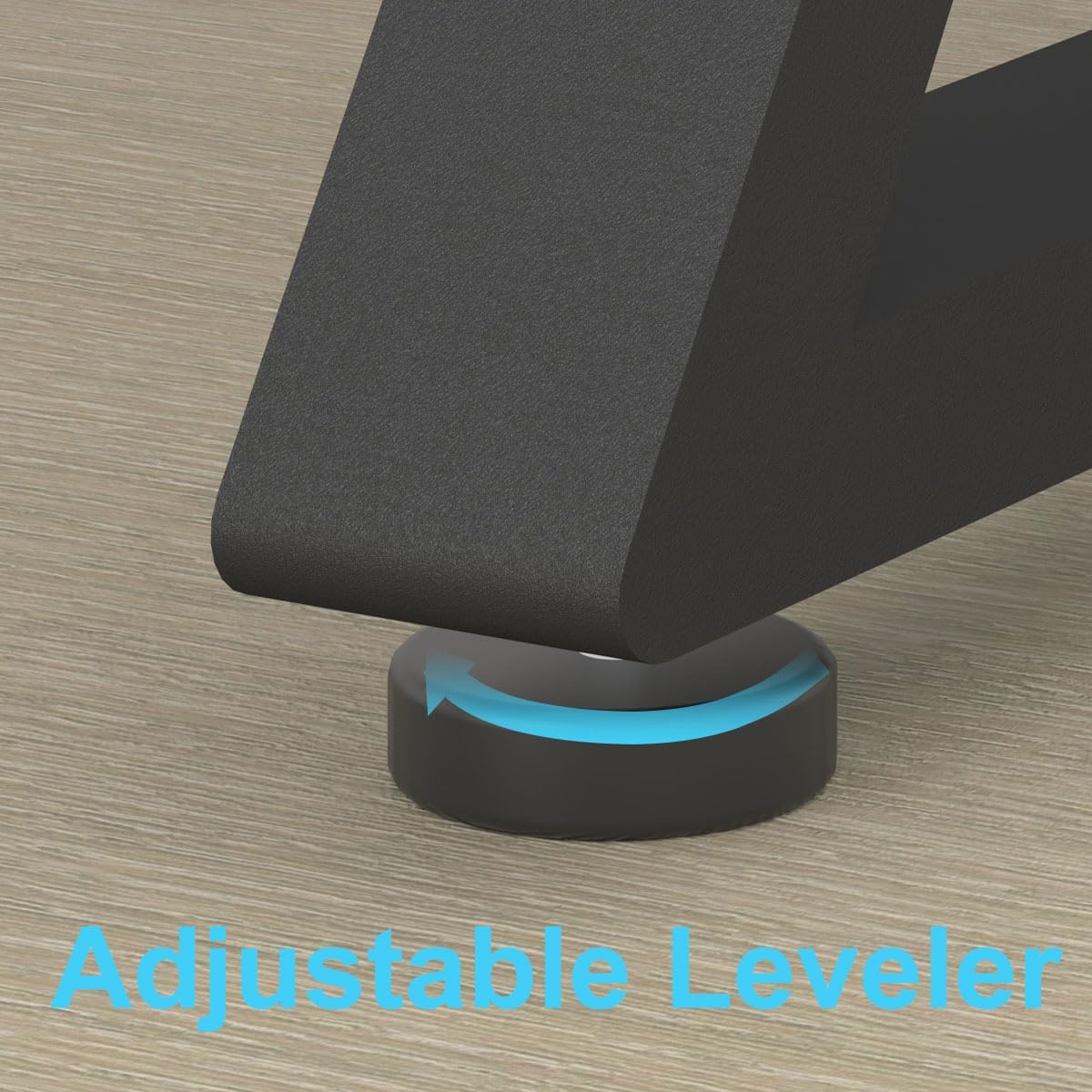 Featuring adjustable feet, this dual monitor desk ensures stability on uneven floors and carpets, catering to various height requirements.