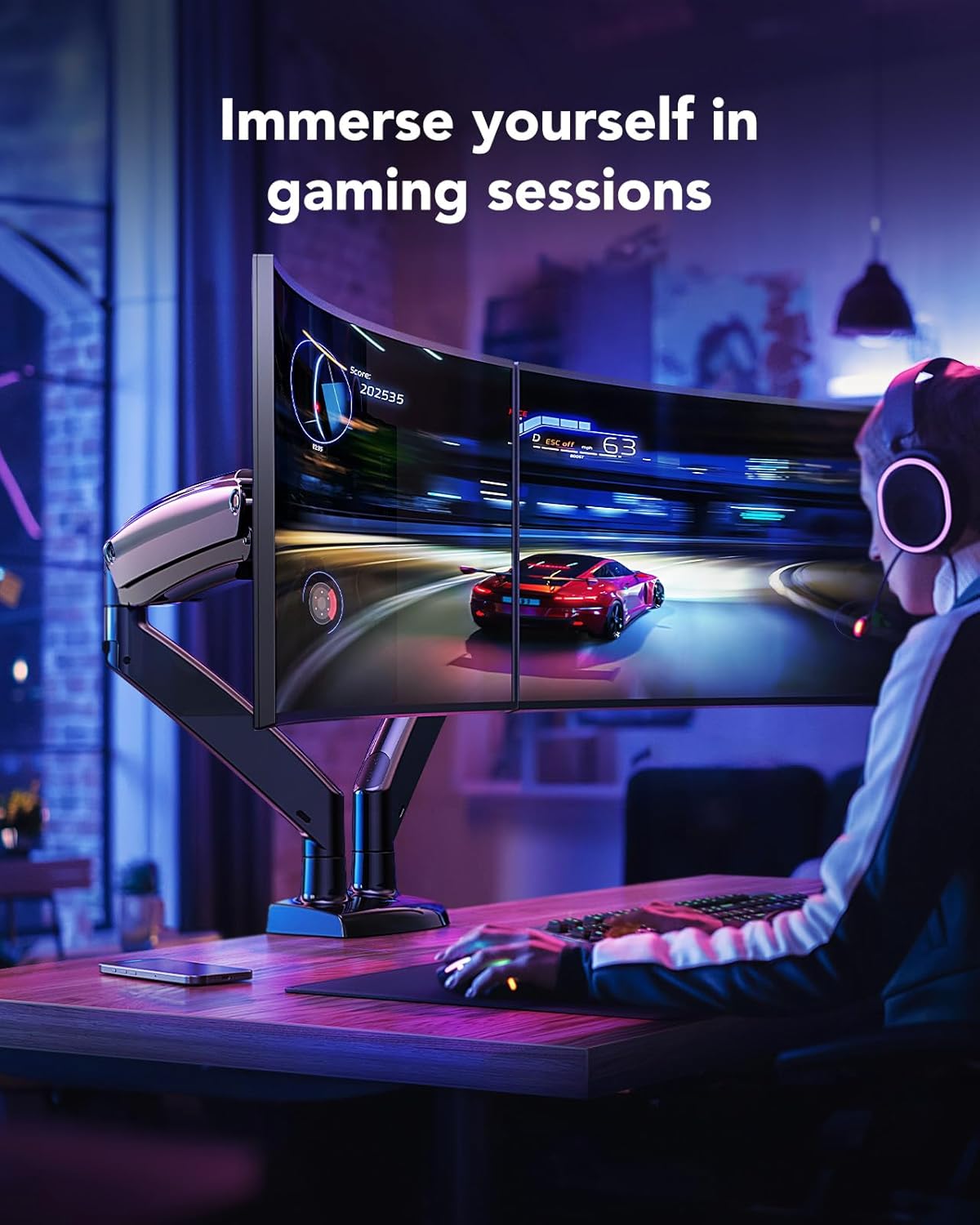 The dual monitor stand fits 13″ to 40″ monitors weighing up to 26.4 lbs per arm,flexible dual monitor arm with +85° to -30° tilt,180° swivel,and 360° rotation