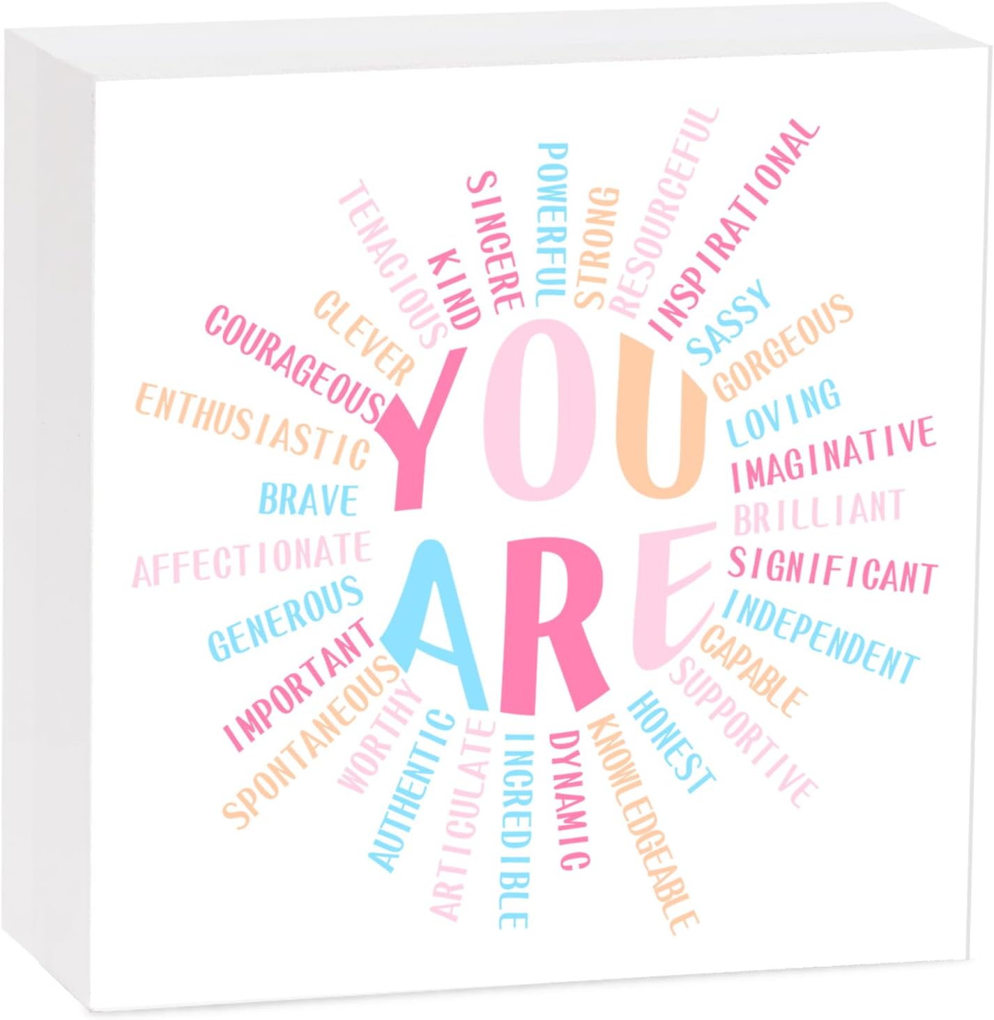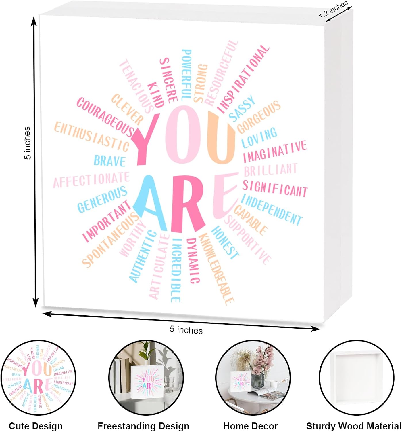 Positive Daily Reminder Sign: This 5 x 5 inch square free-standing inspirational sunshine you are sun wooden box sign will bring a warm atmosphere of hope and encouragement to office, classroom, and study room. Great size for classroom home office table decor and office decorations for work.