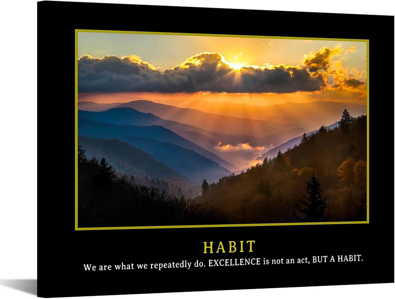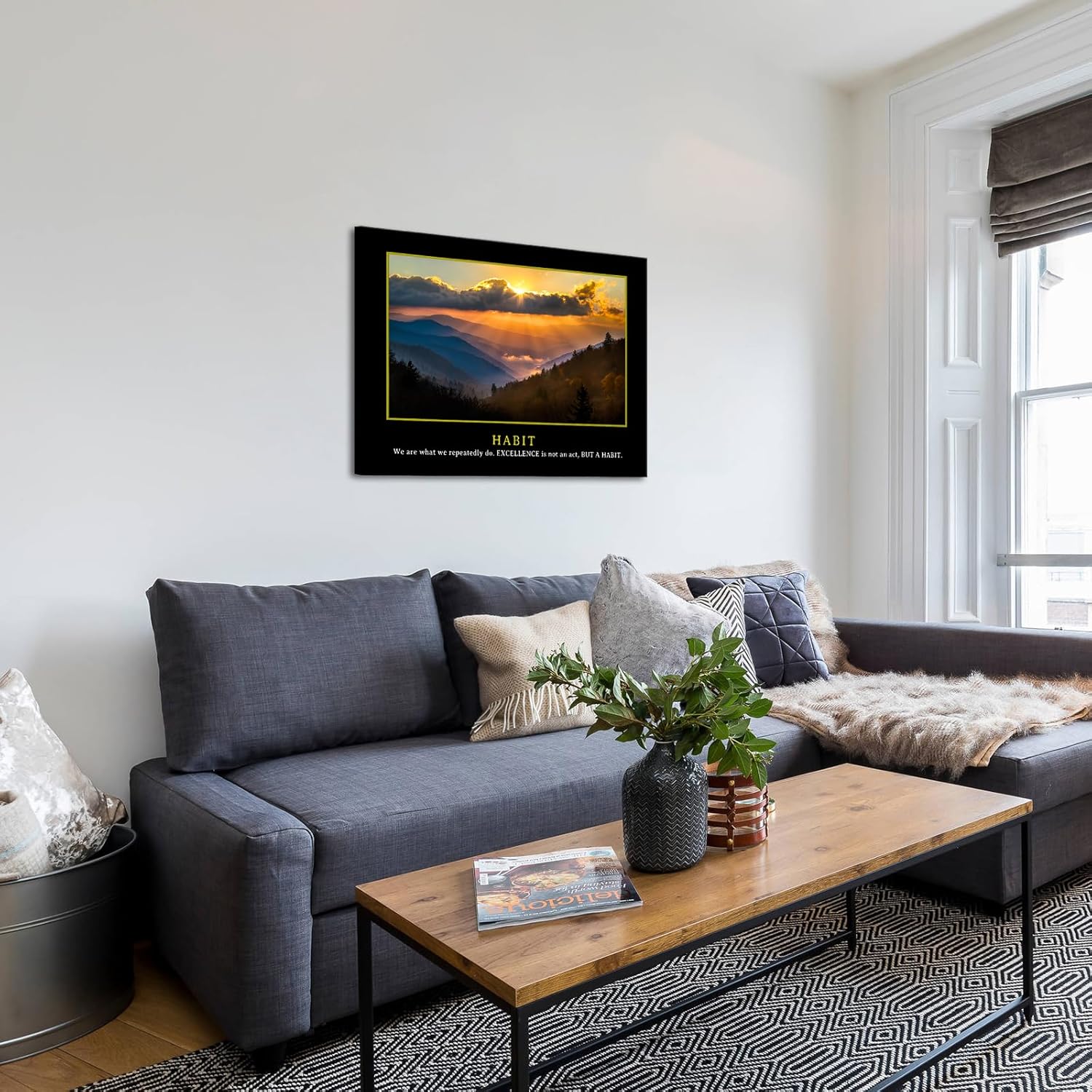 Inspiring Design: Combining a powerful quote with the serene beauty of a Smoky Mountain sunrise, this artwork creates a calming yet motivating atmosphere in any room