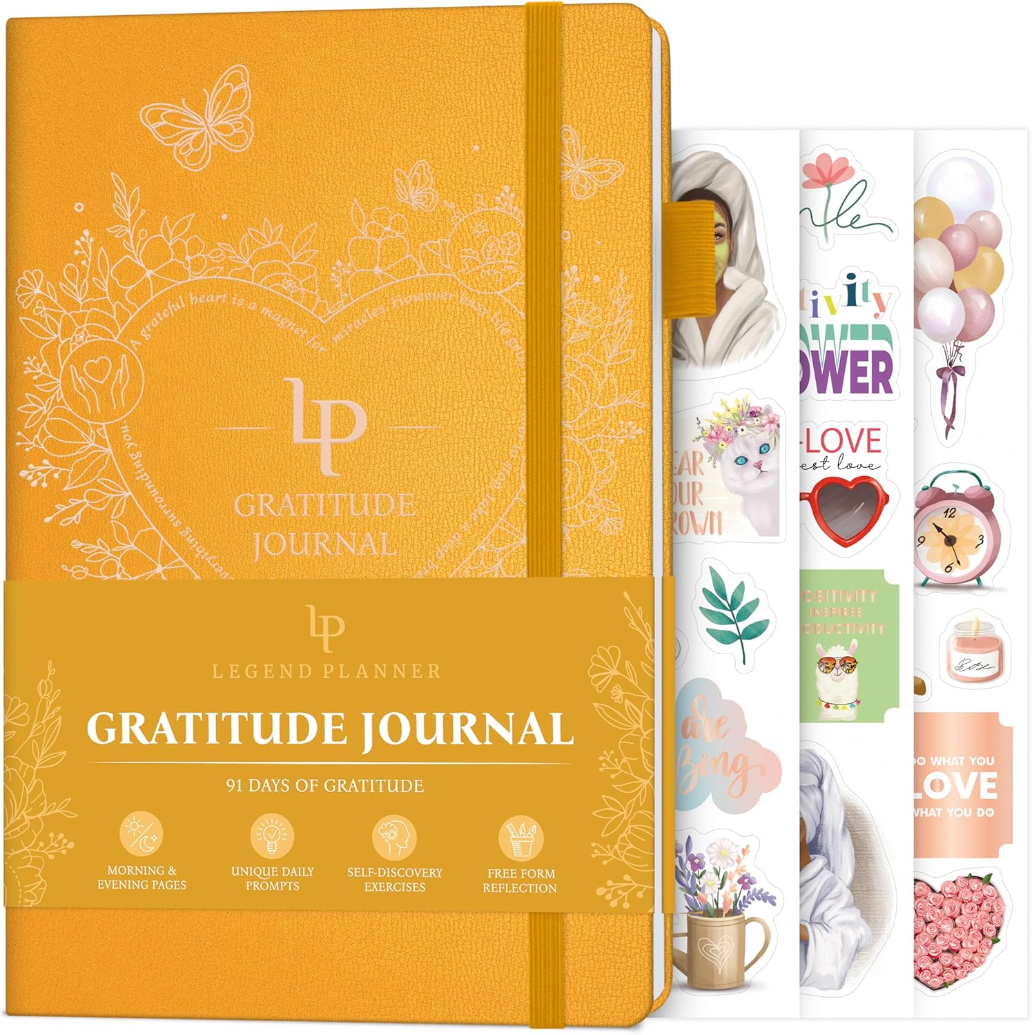 LASTS 13 WEEKS & COMES WITH STICKERS – This positivity journal lasts 3 months and has A5 format (5.8 by 8.3 inches), eco-leather hardcover, thick 120gsm paper, lay-flat binding, pen loop, elastic, 3 bookmarks, colorful stickers, and user guide.
