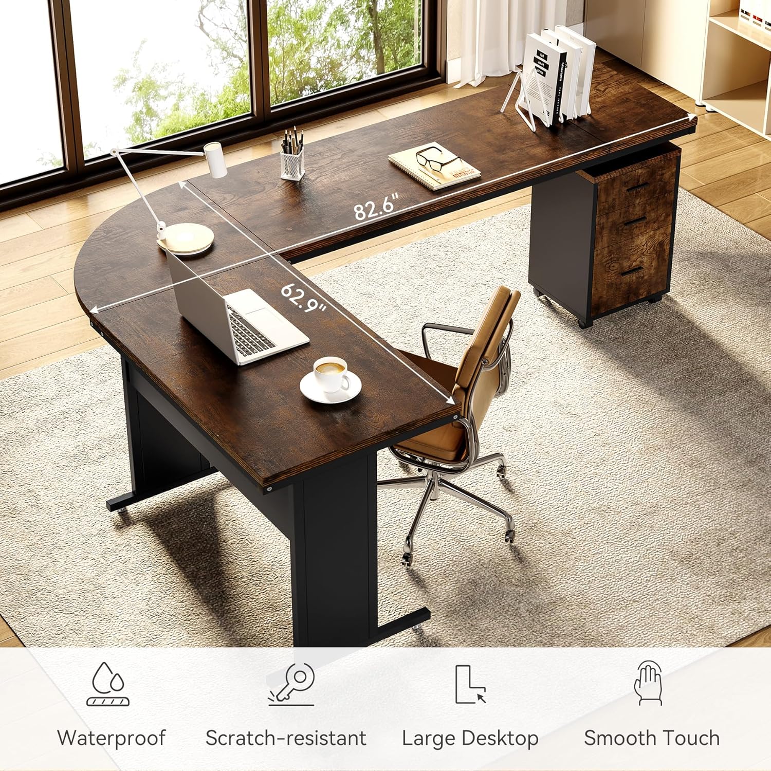 Large Executive Desk: Maximizing your workstation has never been easier with our 83″ L-shaped executive Desk. Its large workspace can easily accommodate multiple monitors, office supplies, and documents, making multi-tasking simpler and more efficient.