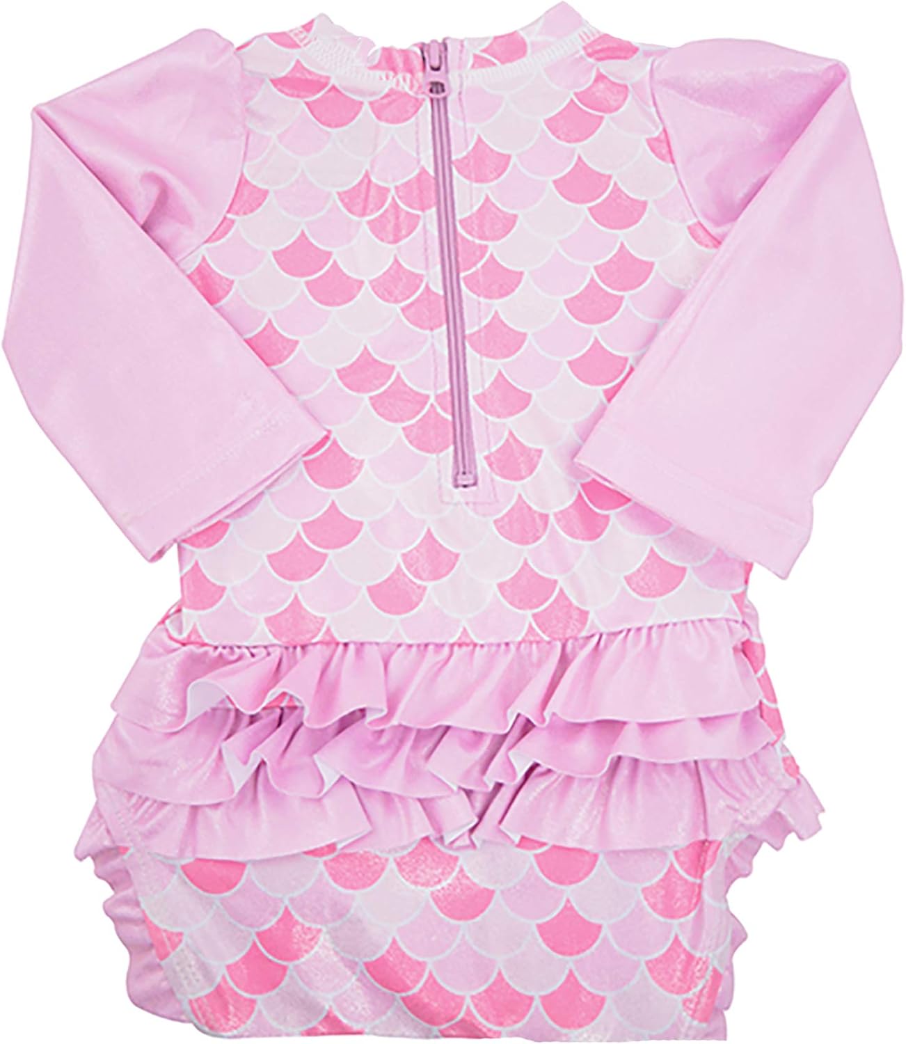 These adorable swimsuits for girls are perfect for your beach vacation or for your pool visit. This one piece swimsuit has long sleeves with UV40 sun protection to cover up those yummy little arms. This rash guard has bottoms that snap open for easy potty breaks or diaper changes. Cute ruffles to add flair to your baby’s fashion forward swim suit.