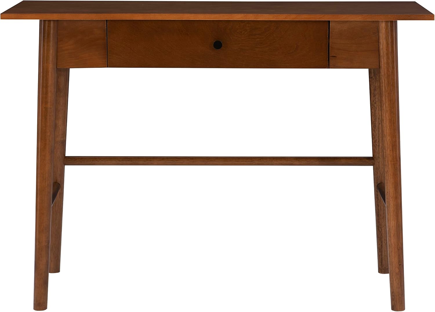 Add a touch of mid-century modern style to your home with our Melissa desk. The sleek lined design is finished in a rich, warm brown. A single drawer is perfect for providing hidden storage space for supplies. Perfect for a home office or work area.