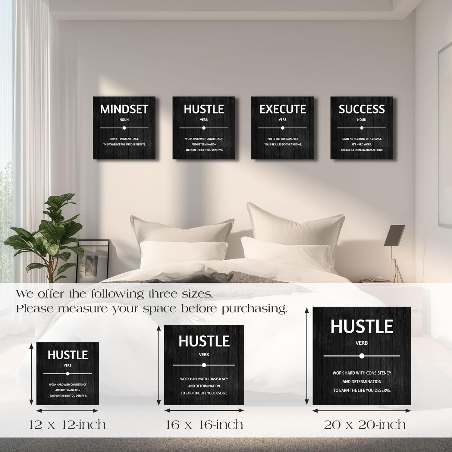 Motivational canvas wall art size :12″x12″x4peices. Set of four, each motivational wall decor posters is 12 inch x 12 inch
