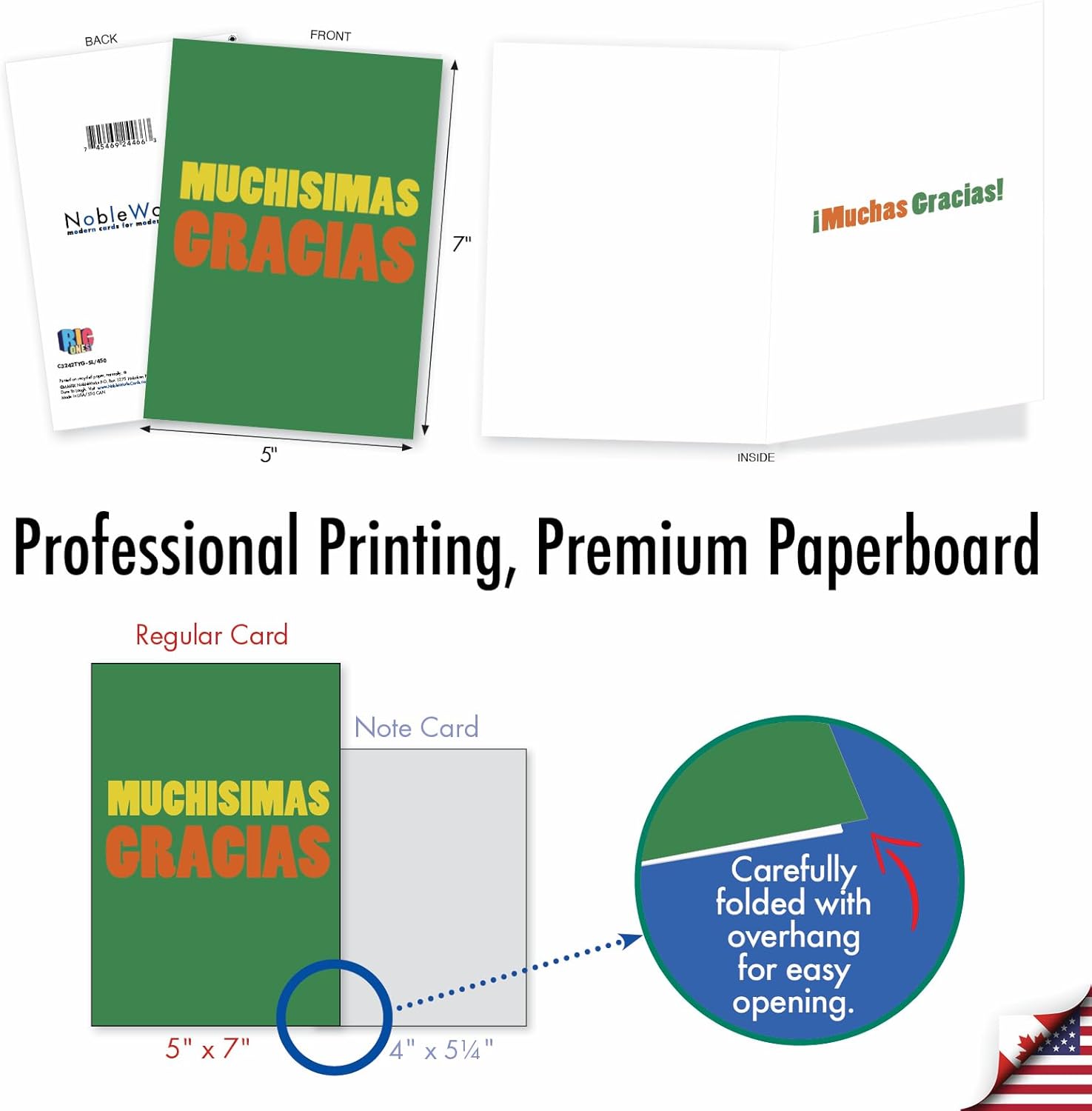 SOCIALLY RESPONSIBLE – Keeping US jobs at home, our products are Made in the USA (and Canada) for almost 40 years. We use thick, white, glossy cardstock, w/ 30% recycled content (no papyrus, naturally). We work to minimize environmental impact!