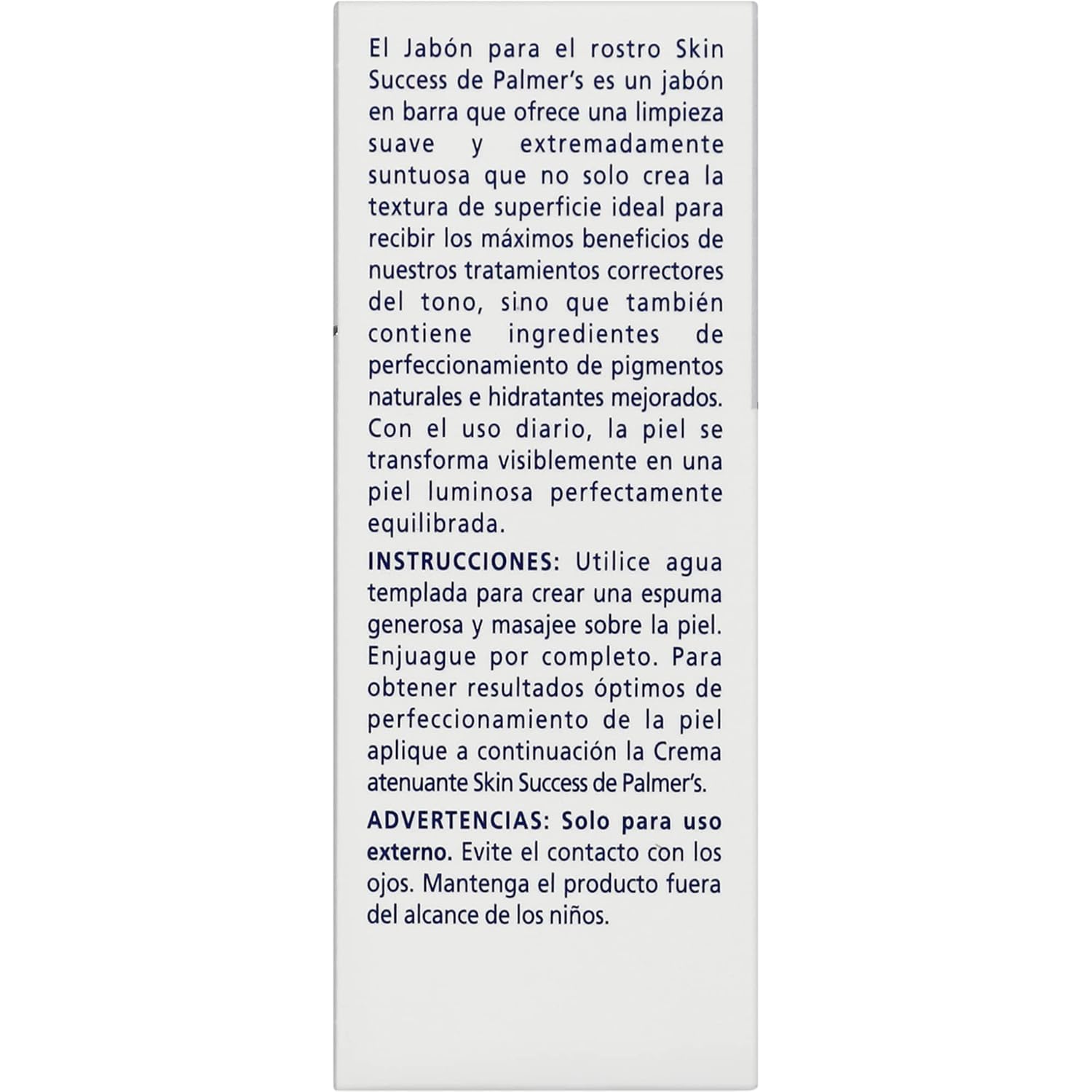 Palmer’s Skin Success Anti Dark Spot Complexion Bar is a gentle cleansing bar that not only creates the ideal surface texture for receiving the maximum benefits of our tone correct treatments, but also contains natural pigment-perfecting ingredients and enhanced moisturizers. With daily use, skin is visibly transformed into luminous, balanced perfection.