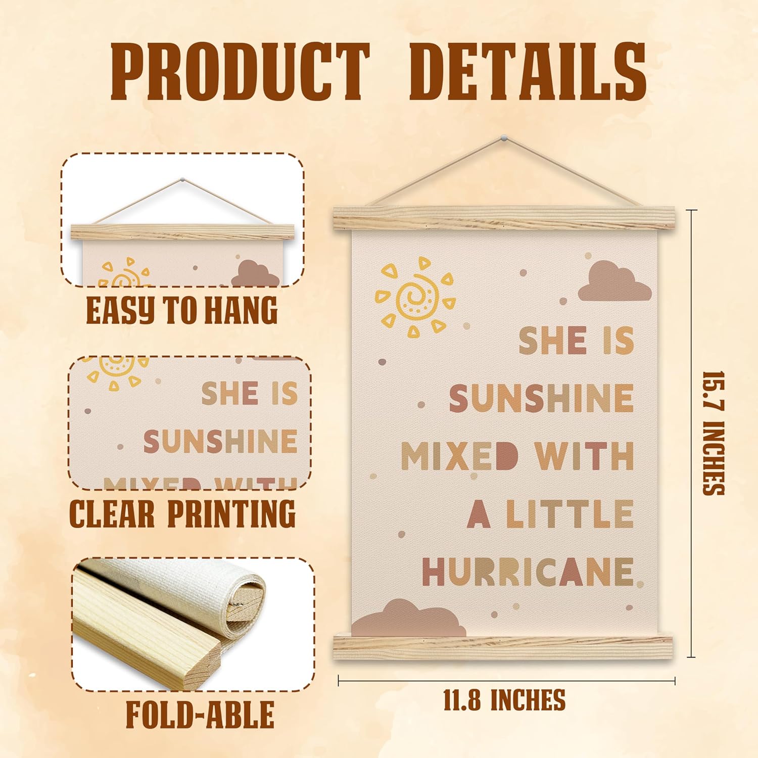 Product Size:This hanging banner measures 11.8 x 15.7 inches and comes ready to hang. Use with command hooks, or nails for versatile classroom or home display.It can also be rolled up for compact storage when not in use.