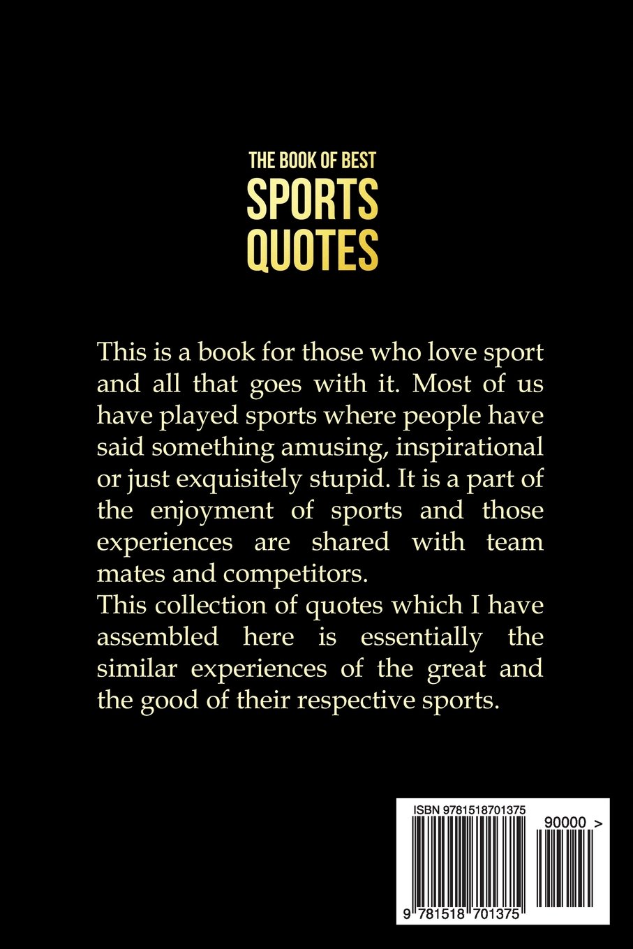 “This book has everything I was looking for and more on sports quotes, absolutely fantastic book. I highly recommend this book to any sportsmen or sportswoman.”