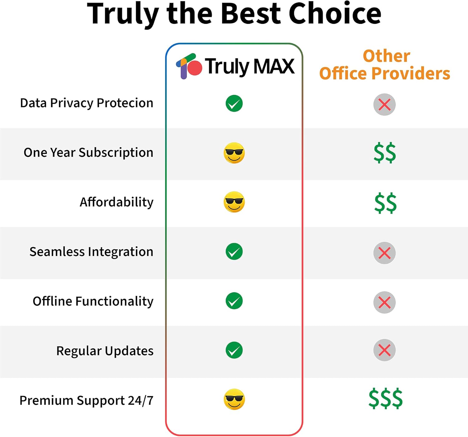 Offline Access, Premium Features and Cloud Access: Access Truly Words, Truly Sheets, Truly Slides and Truly Cloud offline with premium features; safeguard your files with secure cloud storage.