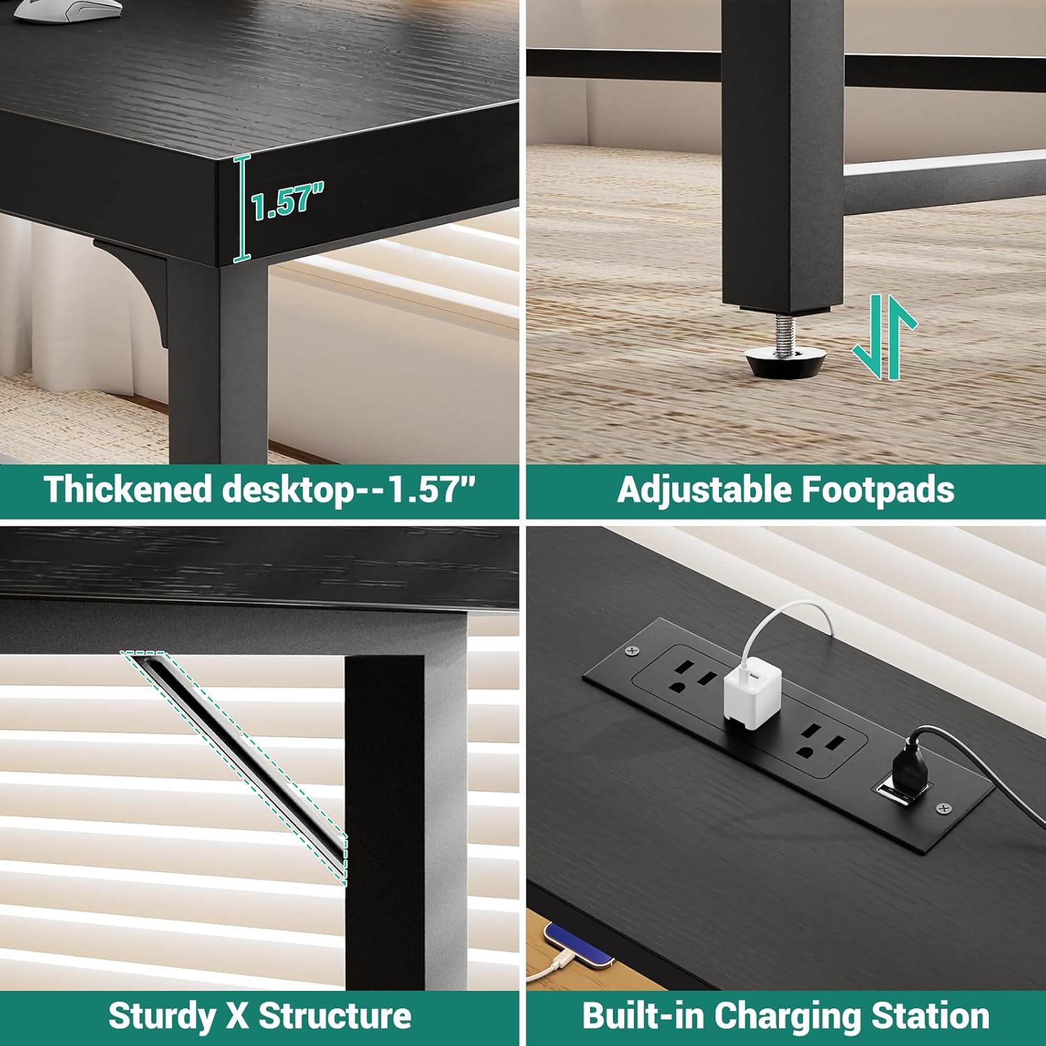 The 1.5 inch thickened desktop provides you with more stable support and abundant space.
