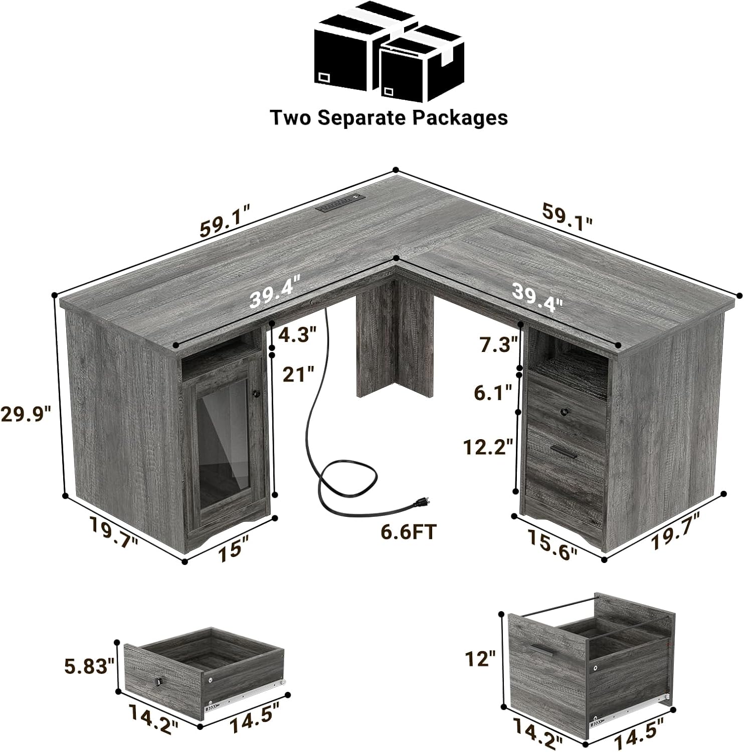 🔌【 Power Outlets & USB Charging Ports 】The l-shaped desk with drawer is built in 4 power outlets and 2 USB ports. It provides extra power support for your computer, laptop, printer, scanner, phone, headset, gaming gear and other electric equipment with fast charging. You do not need to juggle between plugging your phone, diffuseor fan into your computer any more, this allows for all to be plugged in at once, which provides a great convenience to your life when you are working or playing games.