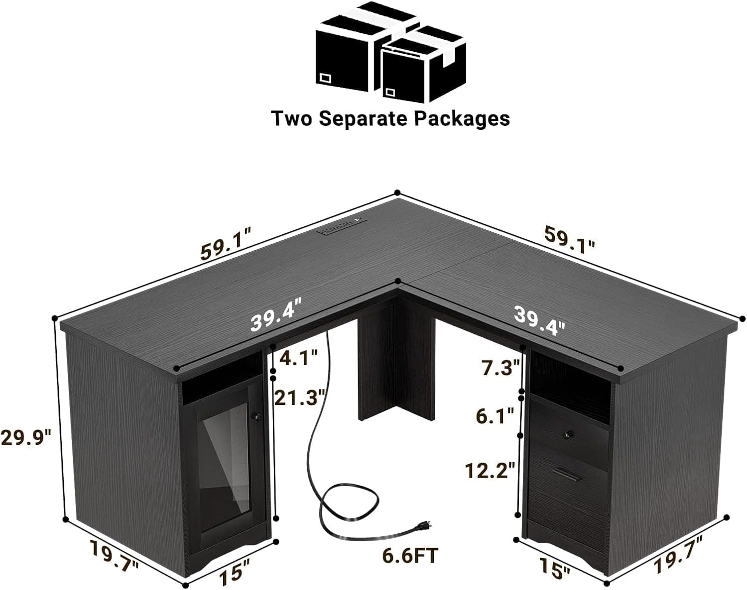 【 Multipurpose Usage】Its L-shape means it can fits into almost any space and have desk space at both sides for productivity. This desk can sit in a corner, large home office, or smaller work nooks, study room, bedroom, living room, office, dorm as a computer desk, office desk, gaming desk, study desk, writing desk, file cabinet, printer cabinet, storage cabinet with ample desktop and large storage space. It also can add vitality and style to your workstation and make your room cozy and complete.