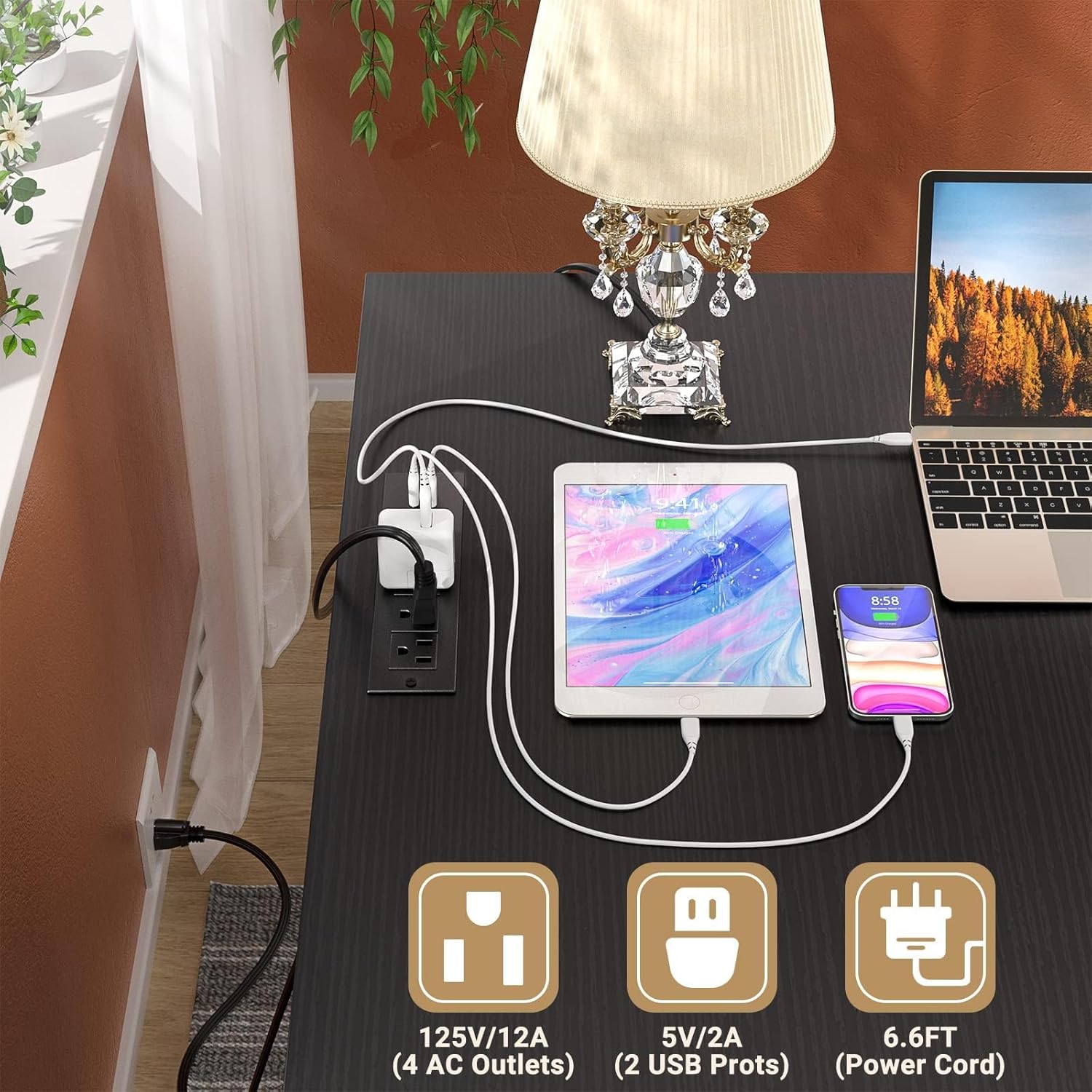 The l shaped computer desk comes with power tray (4 outlet sockets and 2 USB ports). The innovative design offer a great place to set us your computer, laptop, printer, scanner, and charging your phone and smart devices. The built in outlet gives a great additions that increases the overall utility of the desk to plug-ins for all of your cords. You can have everything handy now.