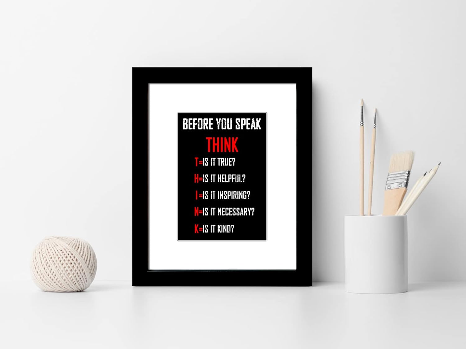 Wieco Art Think Quotes Wall Art Inspirational Canvas Print Motivation Classroom Decor With Black Frame and Real Glass for Home Office Wall Decoration