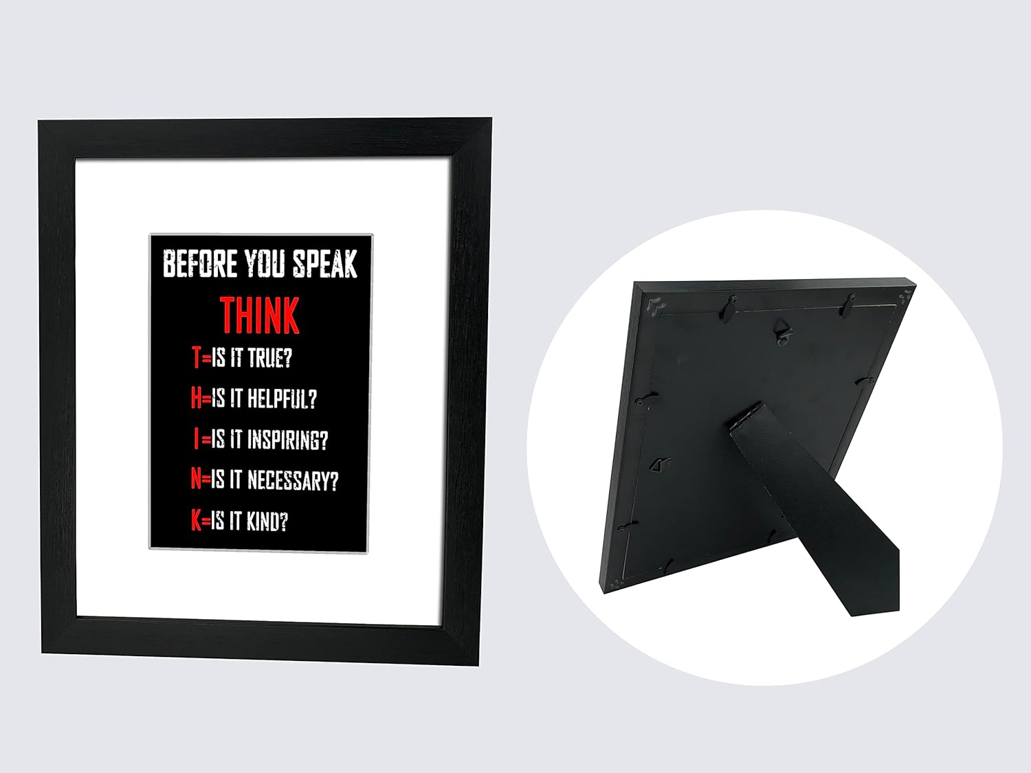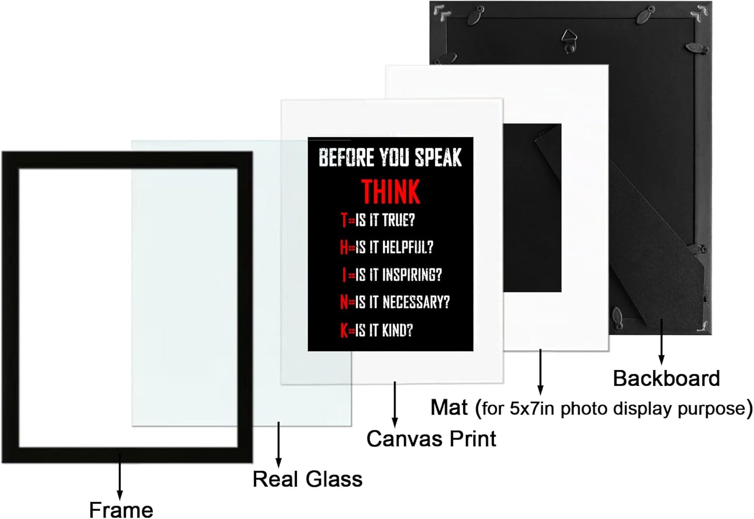Quality 8x10in PS frame with motivational canvas print. Real glass front gives a clear view of the picture.