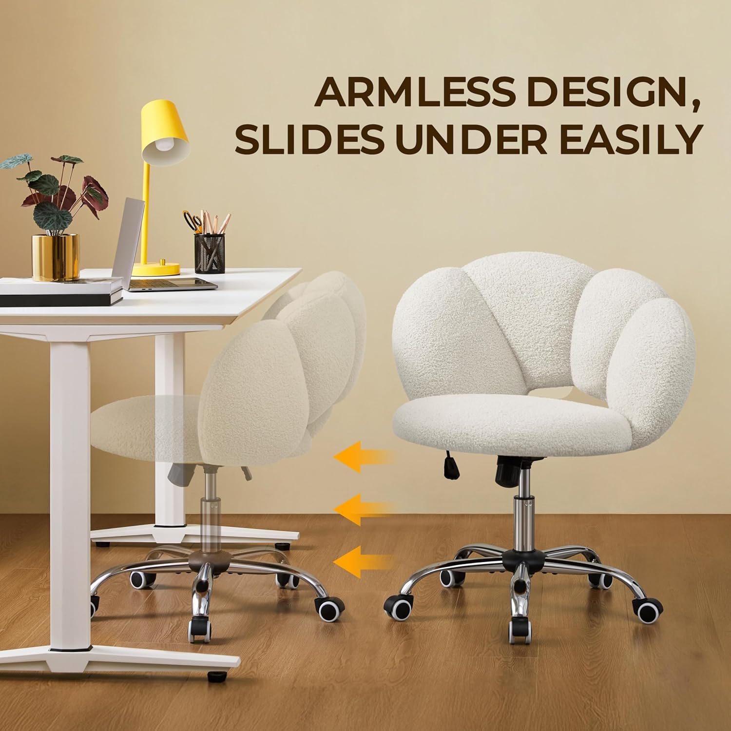 Yaheetech Boucle Upholstered Desk Chair Cloud-Shaped Vanity Chair Adjustable Home Office Computer with Rolling Wheels for Living Room, Bedroom White